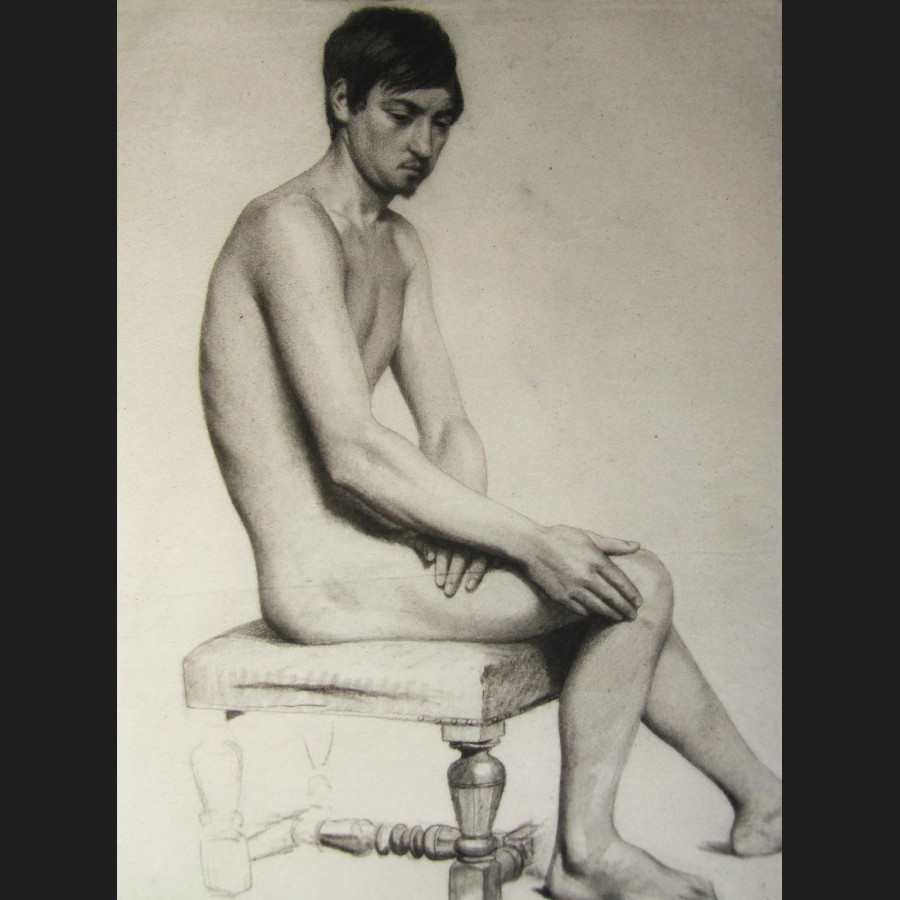 École FRANÇAISE du XIXème siècle, Académie d'homme nu assis sur un tabouret, dessin