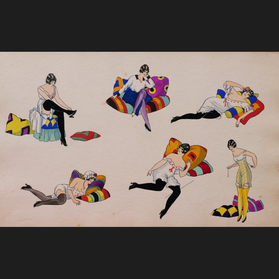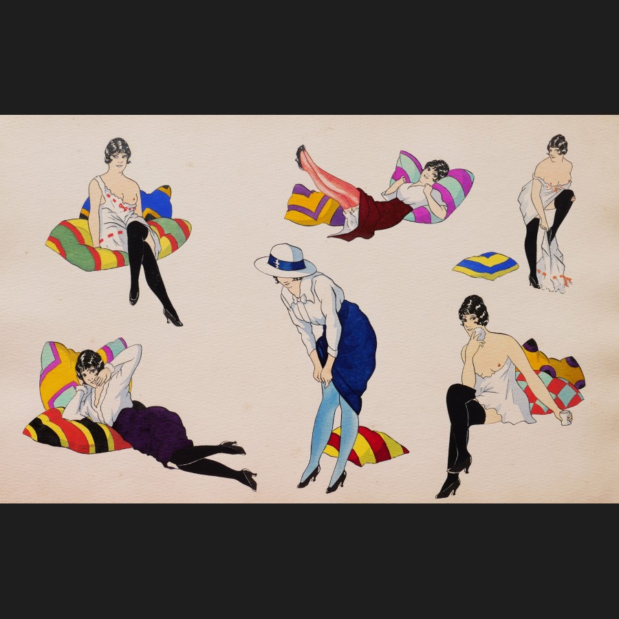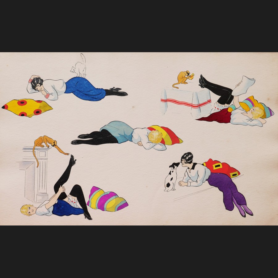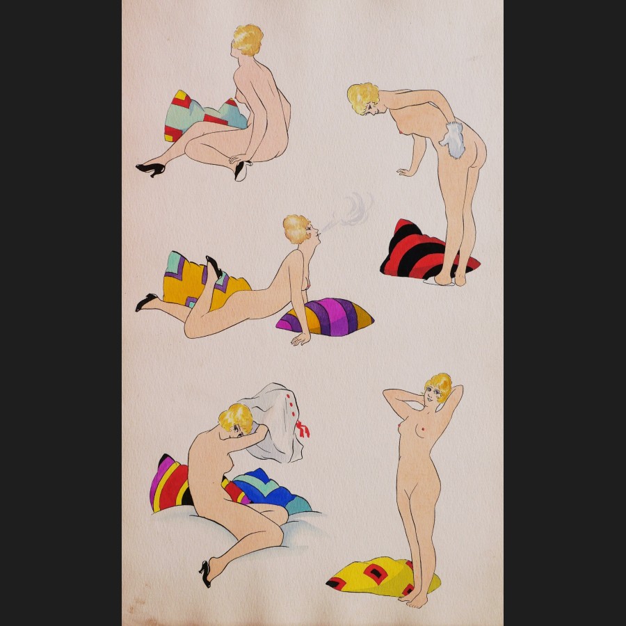 Album composé de 12 feuilles encrées, aquarellées et gouachées