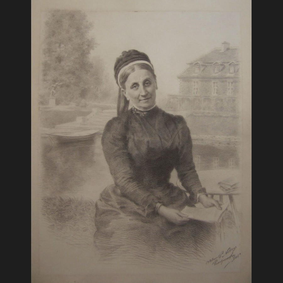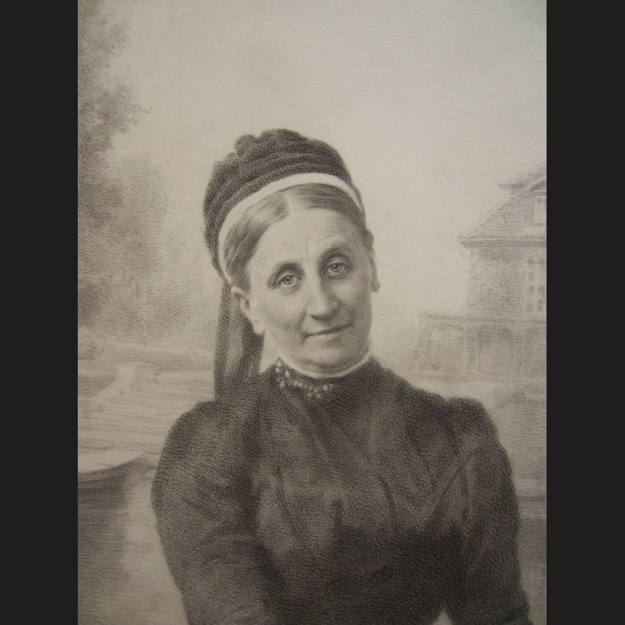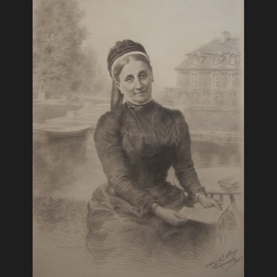Frédéric PUECHMAGRE (actif fin XIXème siècle) Portrait de Mme … dans le parc de sa villa, dessin