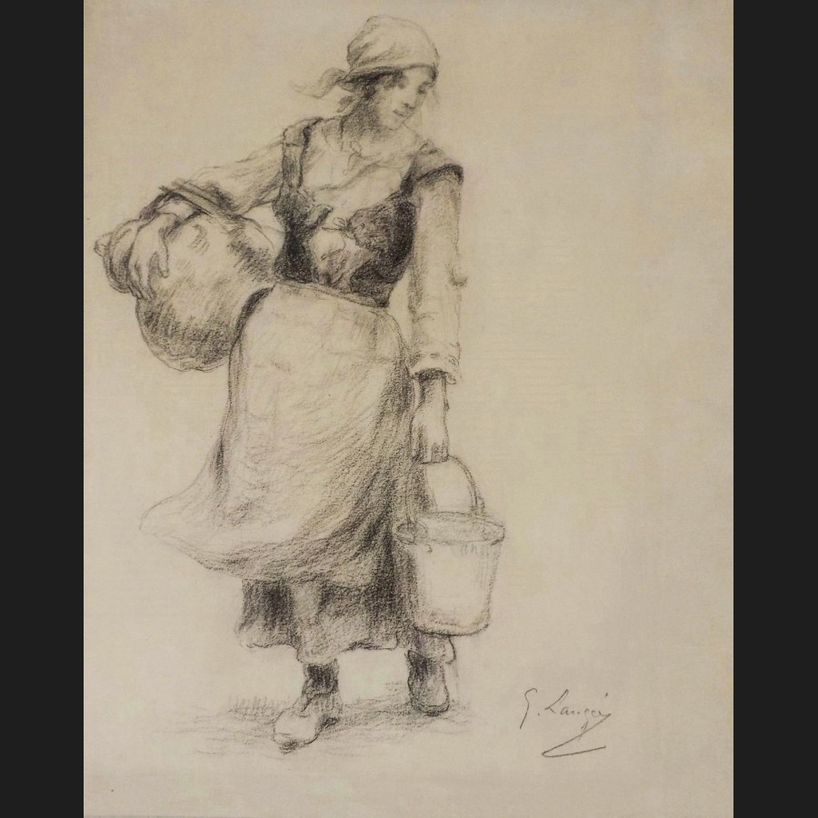 Georges Paul François Laurent LAUGÉE, La laitière, dessin