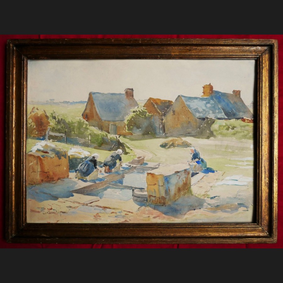 Camille CARLIER-VIGNAL, Femmes au lavoir à Camaret, aquarelle