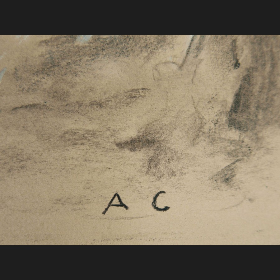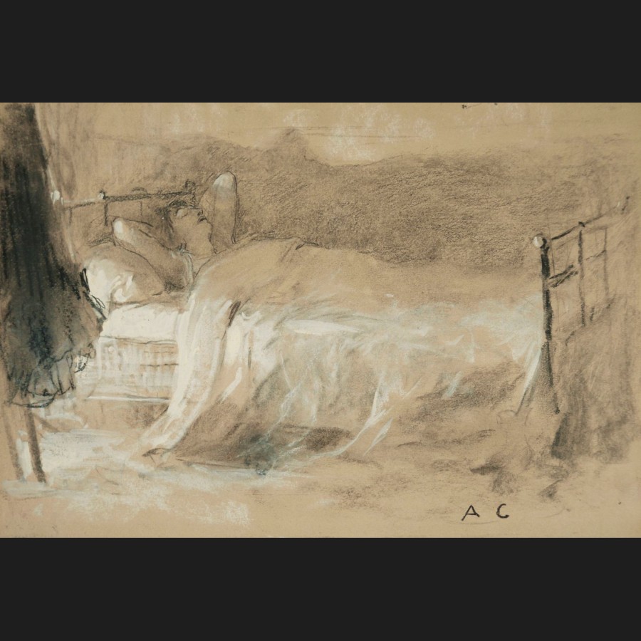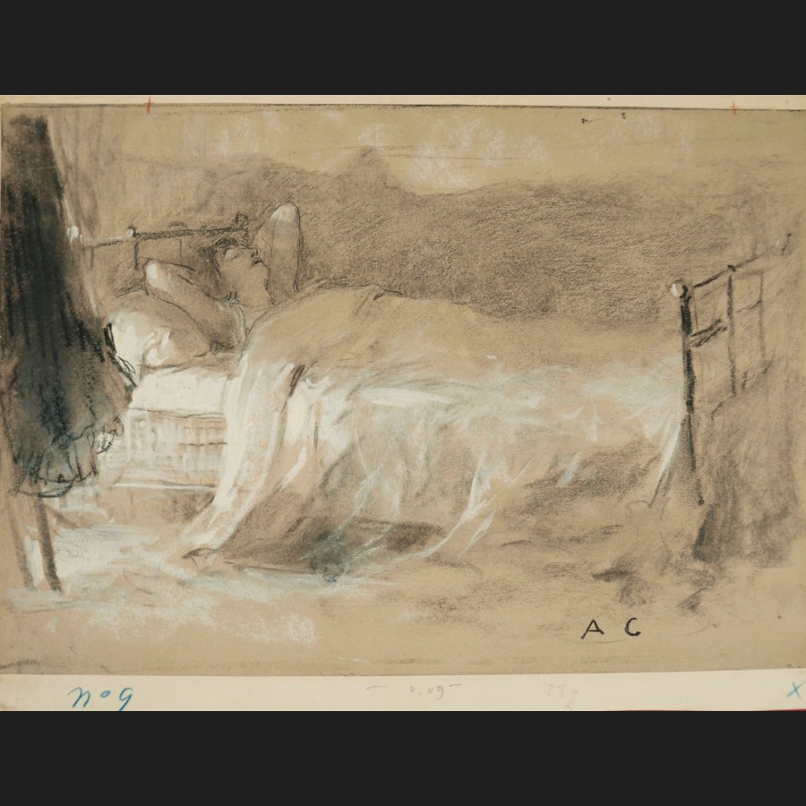 Antoine CALBET (Combebonnet, 1860 – Paris, 1944)Le réveilFusain et huile sur papierMonogrammé en bas à droite AC21 x 30,5 cmCadre en chêne ciré