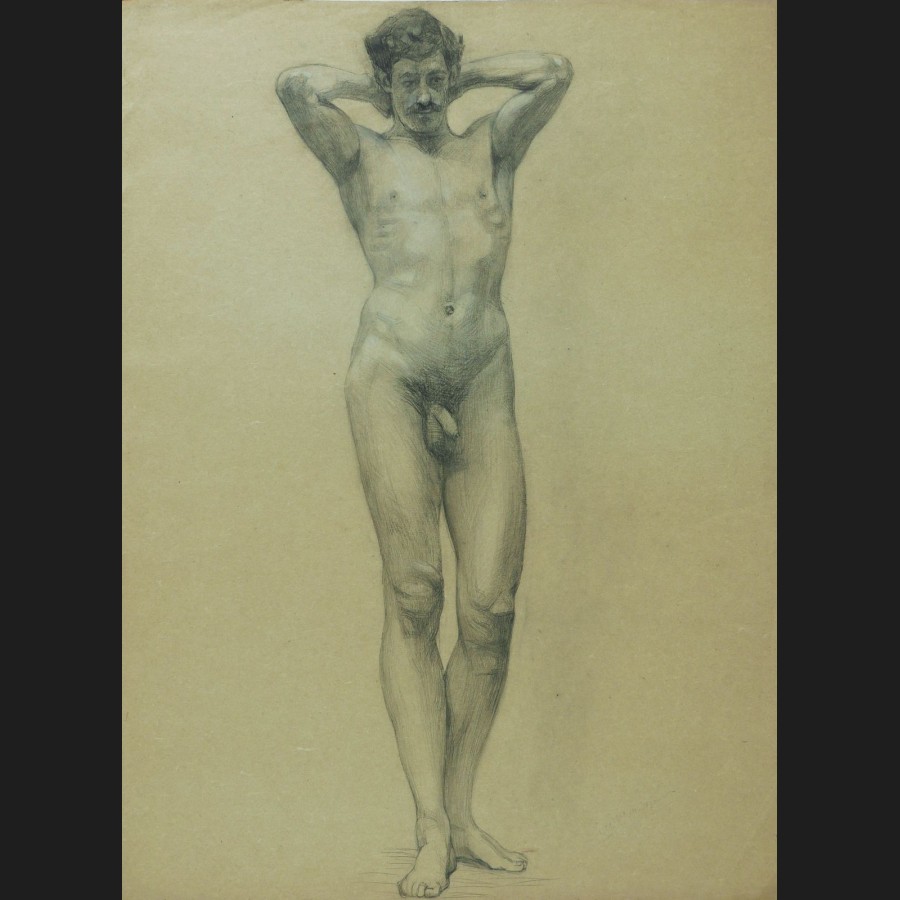Pierre-Antoine-Marie CLUZEAU, Nu masculin debout, dessin