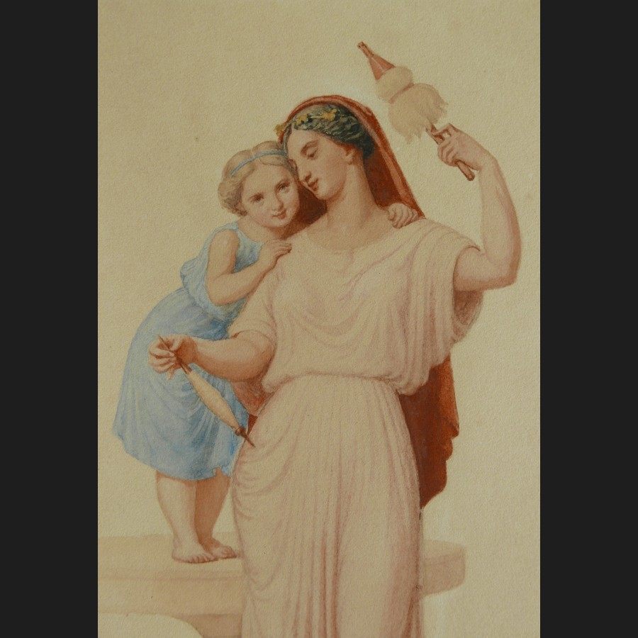 Pierre Eugène Jules MAISON, Fileuse et enfant (Pénélope et Télémaque?), dessin