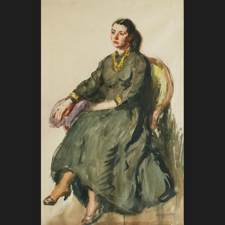 Marguerite Angèle Jeanne CARPENTIER, Jeune femme assise dans un fauteuil, aquarelle