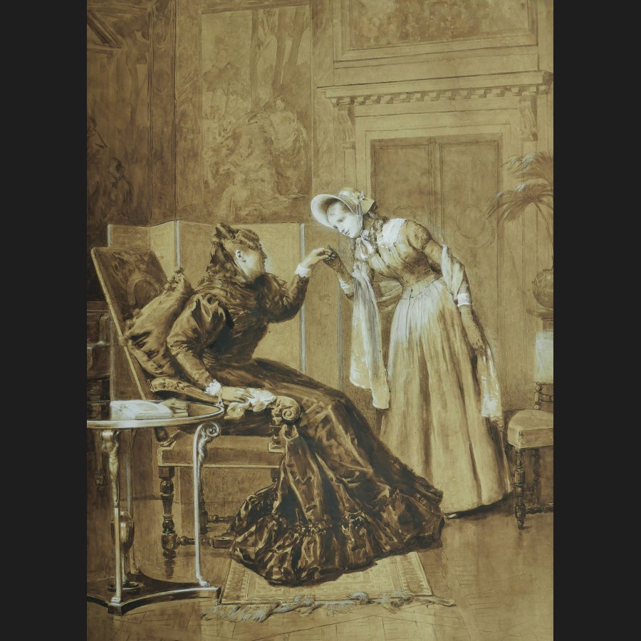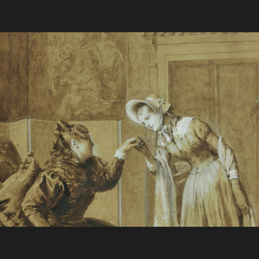 École FRANÇAISE de la seconde moitié du XIXème siècle, La visite, dessin