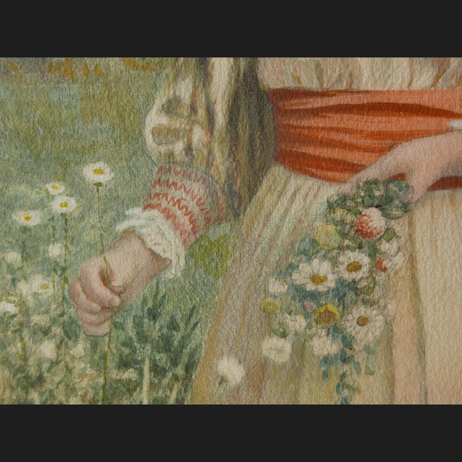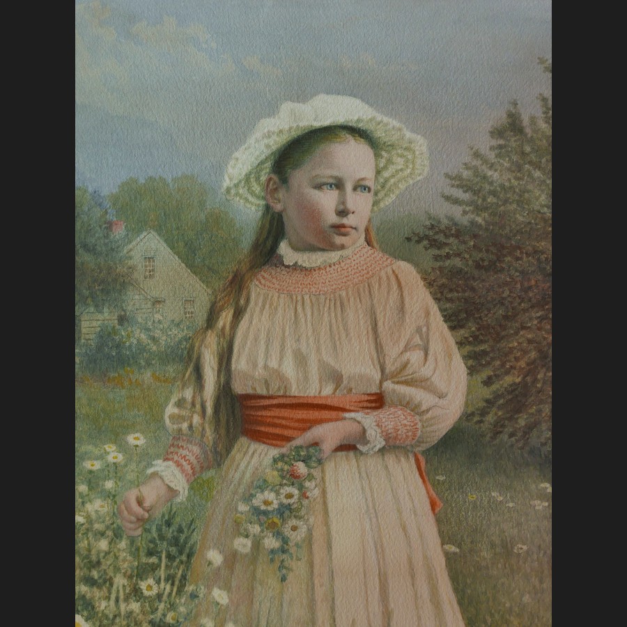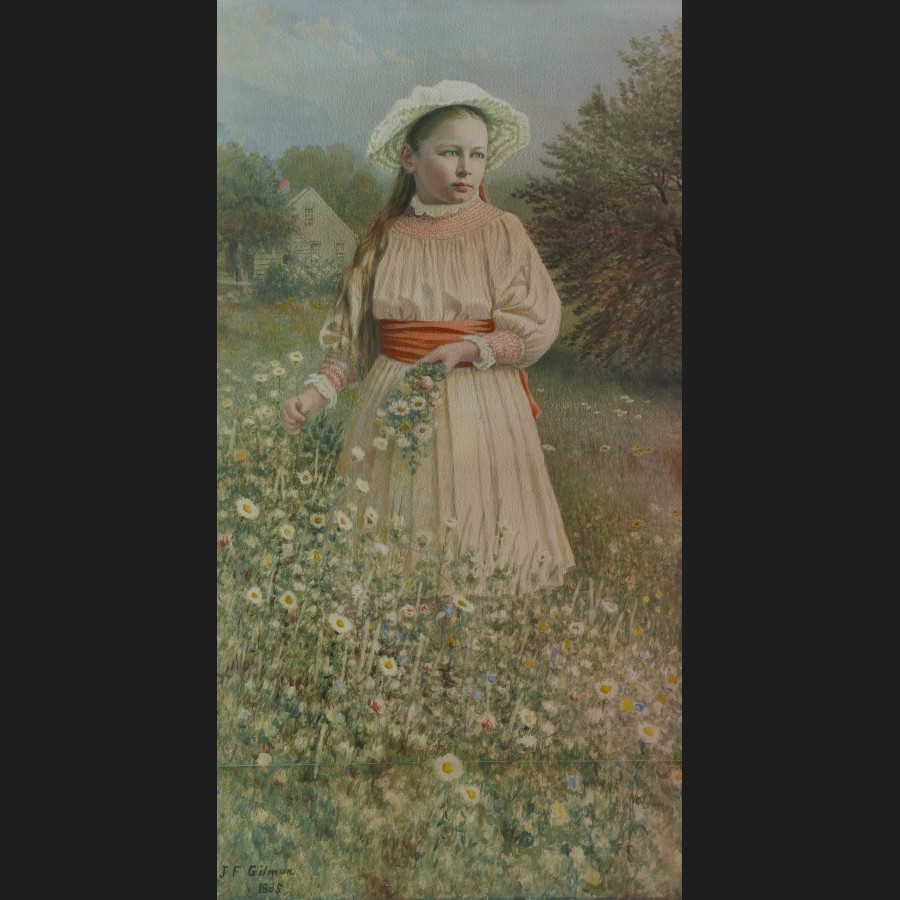James Franklin GILMAN, Petite fille dans un champs en fleur, Massachussetts, aquarelle