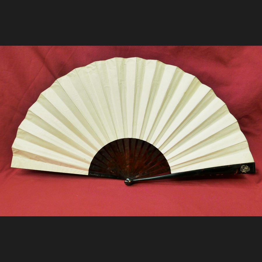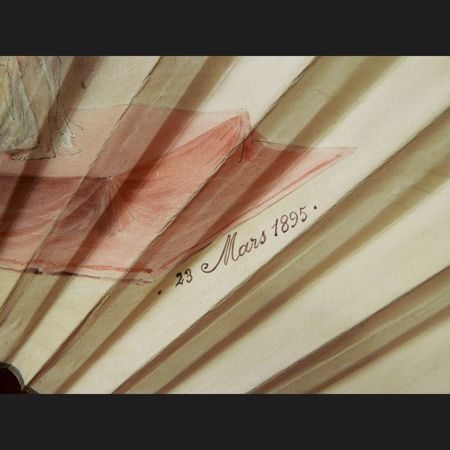 Éventail de la maison Duvelleroy à brins en écaille et feuille peinte à l'aquarelle sur vélin