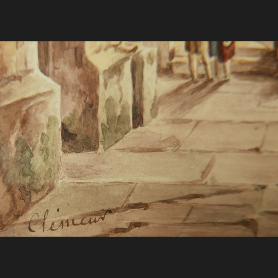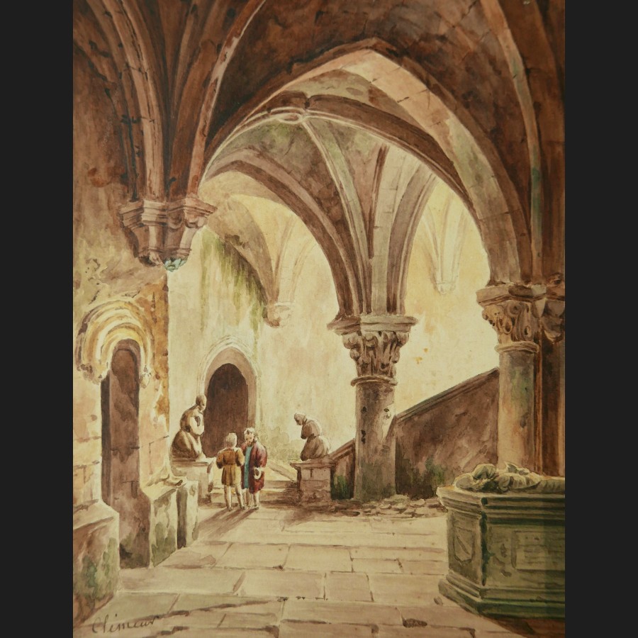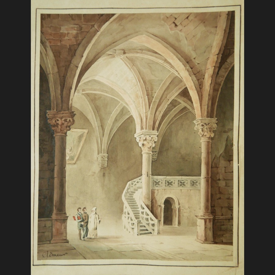 CLÉMENT (actif circa 1830)Deux intérieurs de crypte animésPaire d'aquarellesSigné en bas à gauche Clément19 x 15 et 20,5 x 16 cm
