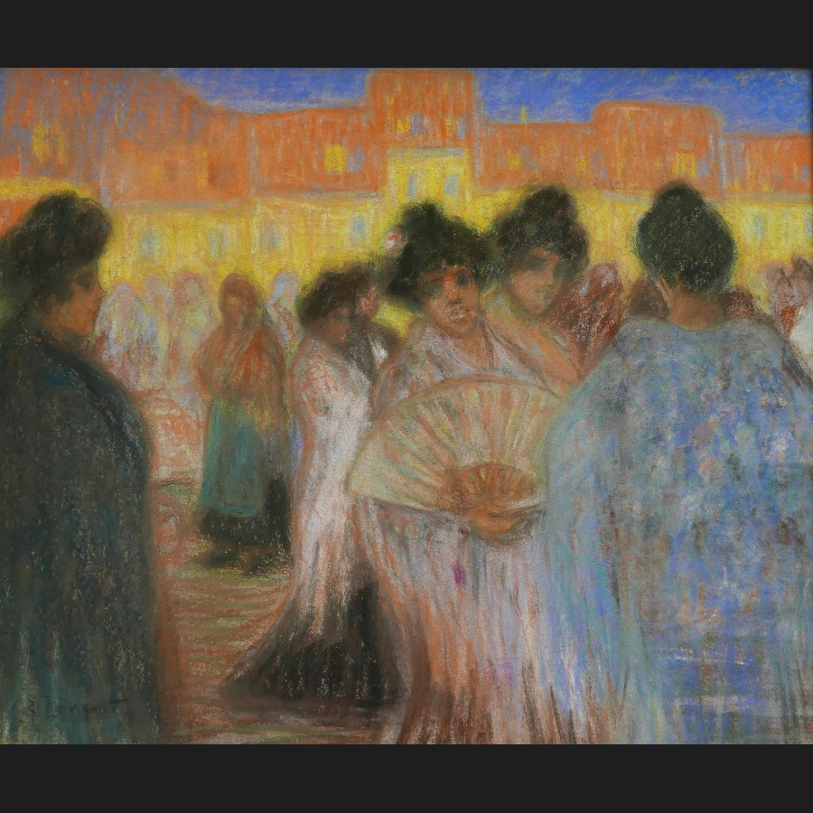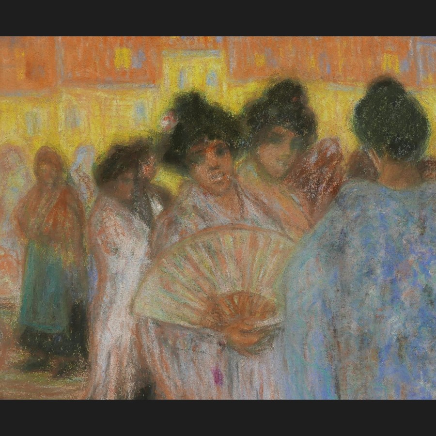 Evelio TORENT MARSANS, Femmes sur une place en Espagne, pastel