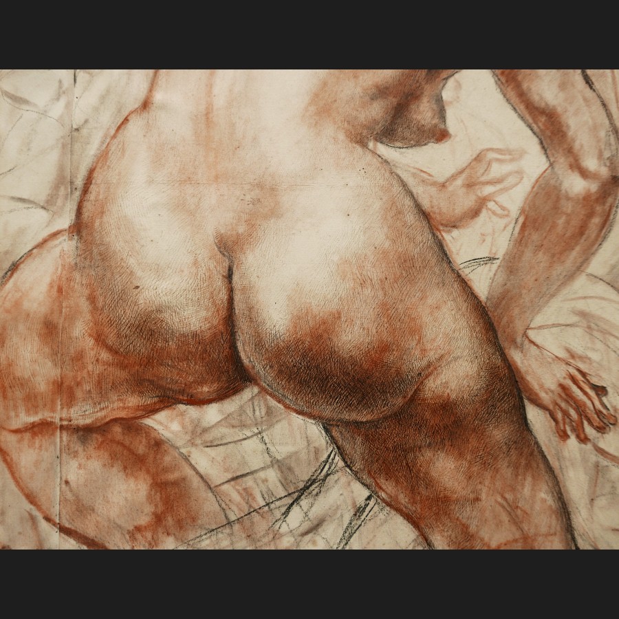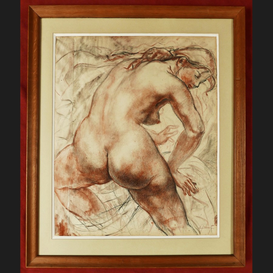Alfred Auguste JANNIOT, Nu de dos, dessin
