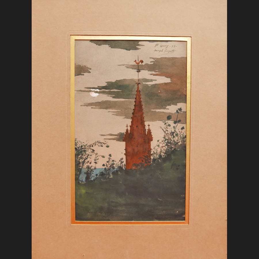 Joseph GUYOT, L'église Notre-Dame de la Ronce à Saint-Quay-Portrieux de nuit, dessin