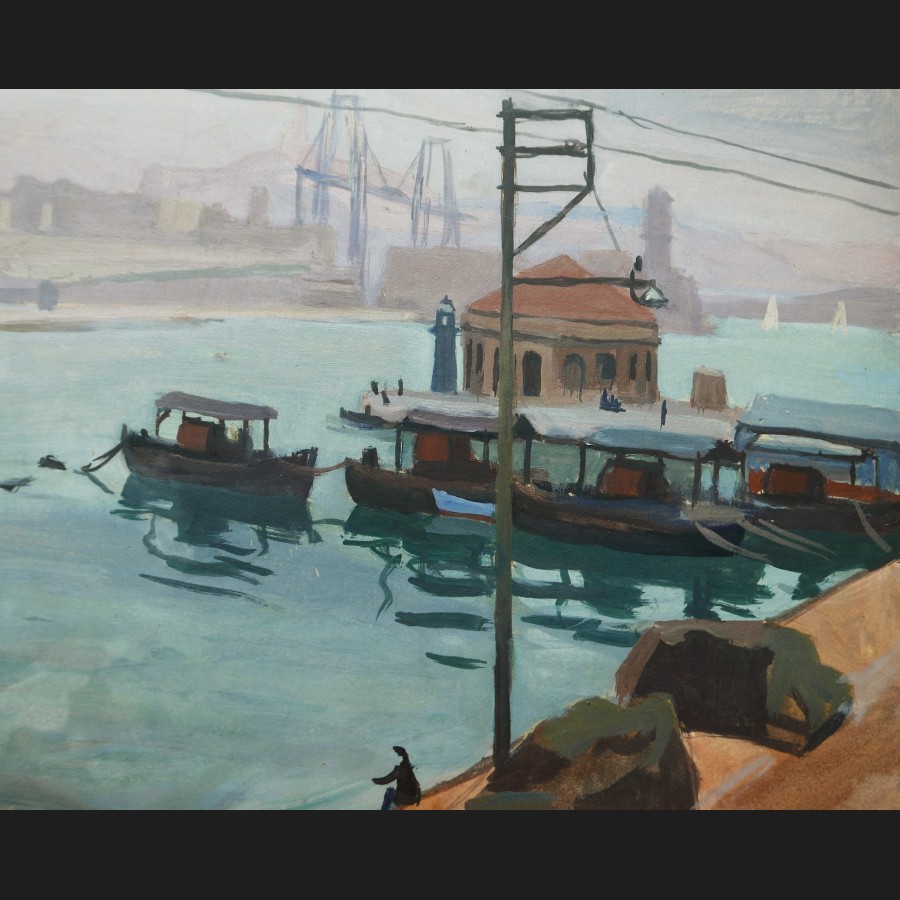 Edmond ASTRUC, Le Port de la Joliette à Marseille, gouache