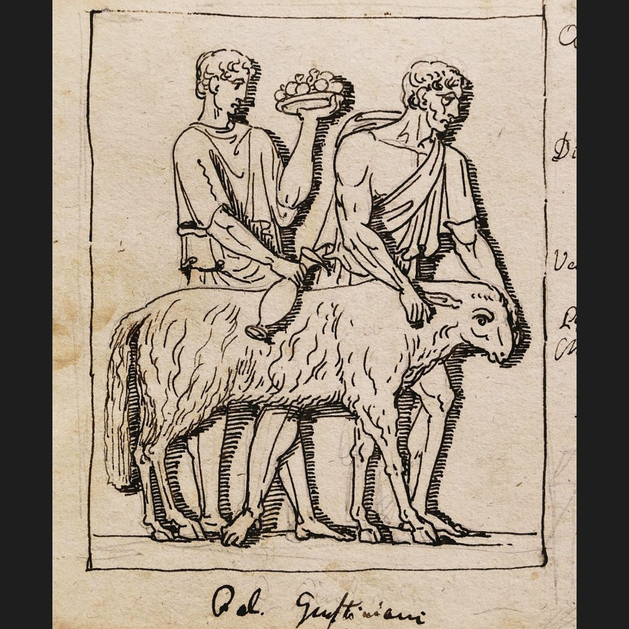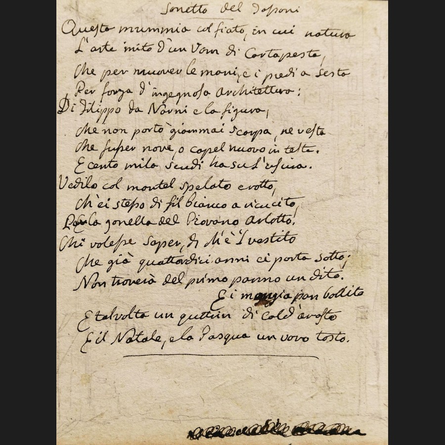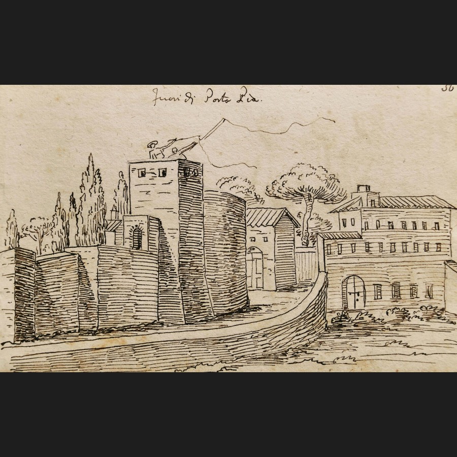 Vue de la Porta Pia à Rome et Sonnet d'Alessandro Tassoni avec la copie d'un bas-relief du Palazzao Gustiniani à Rome