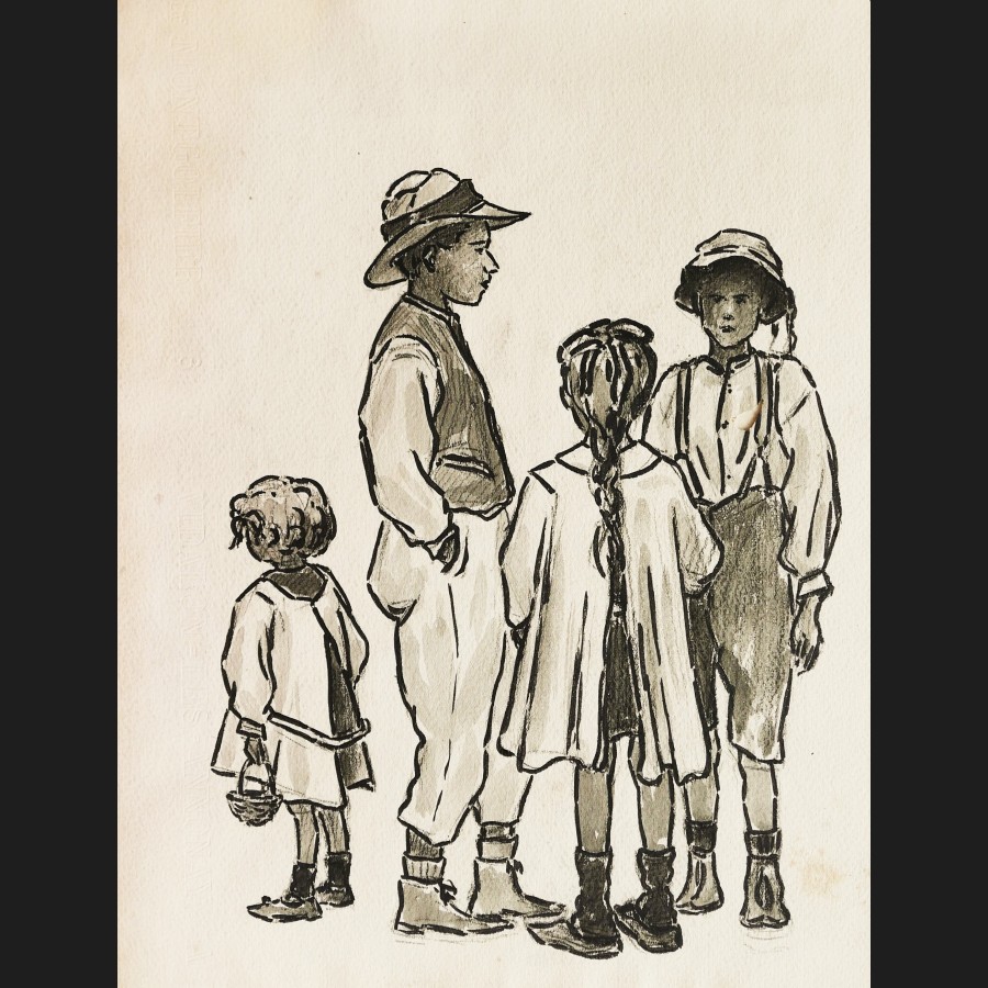 Léon Jean GIORDANO di PALMA, Quatre enfants au Maroc, aquarelle