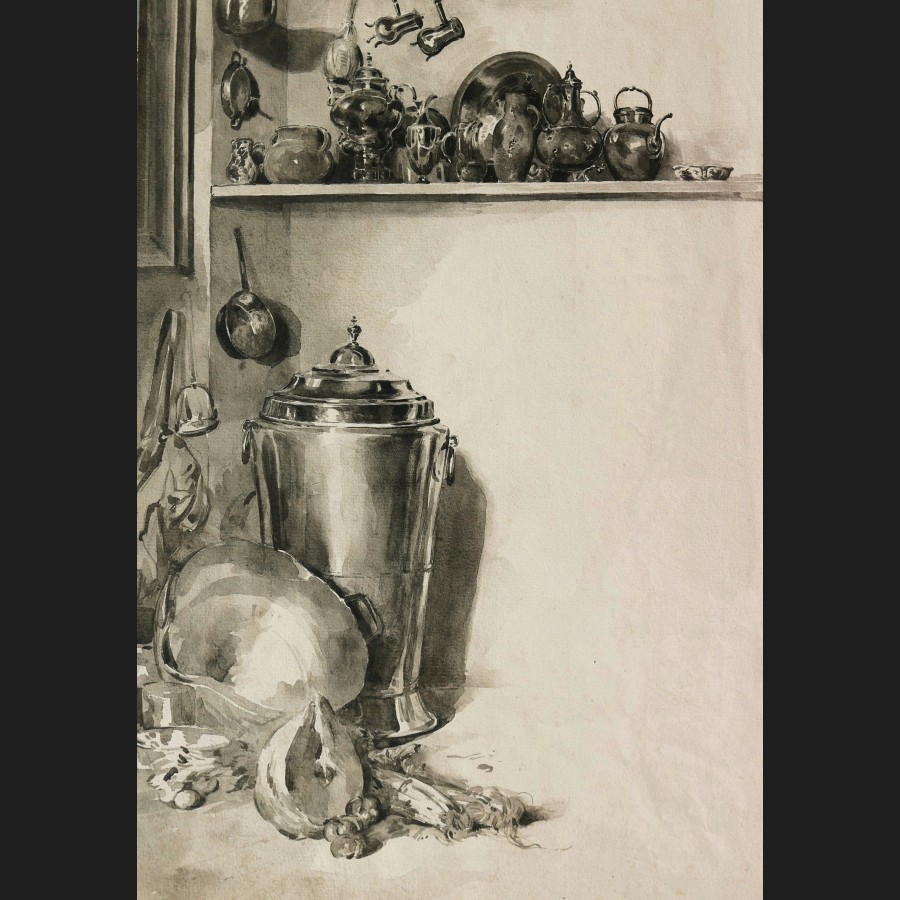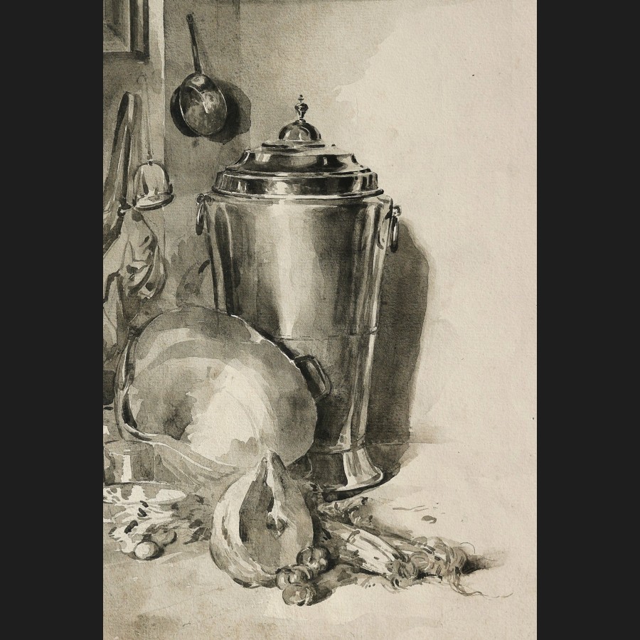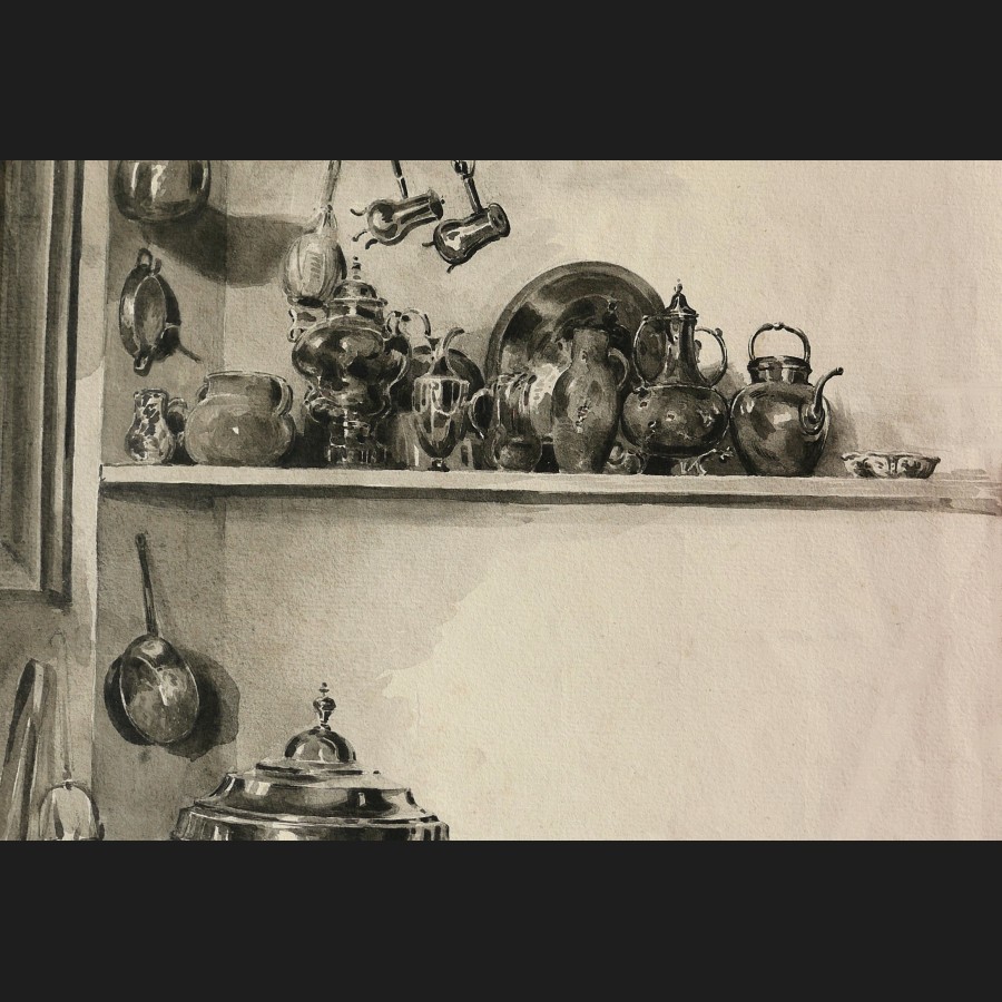 Attribué à Antoine VOLLON, Intérieur d'une cuisine, dessin