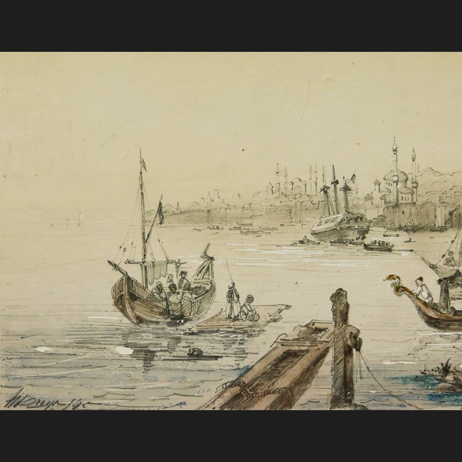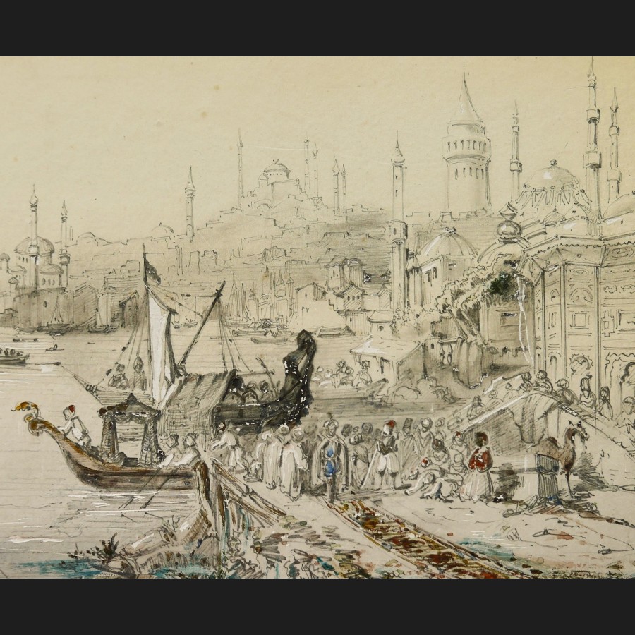 École du XIXème siècle, Vue animée de Constantinople, dessin