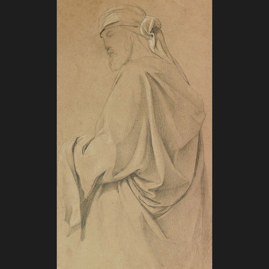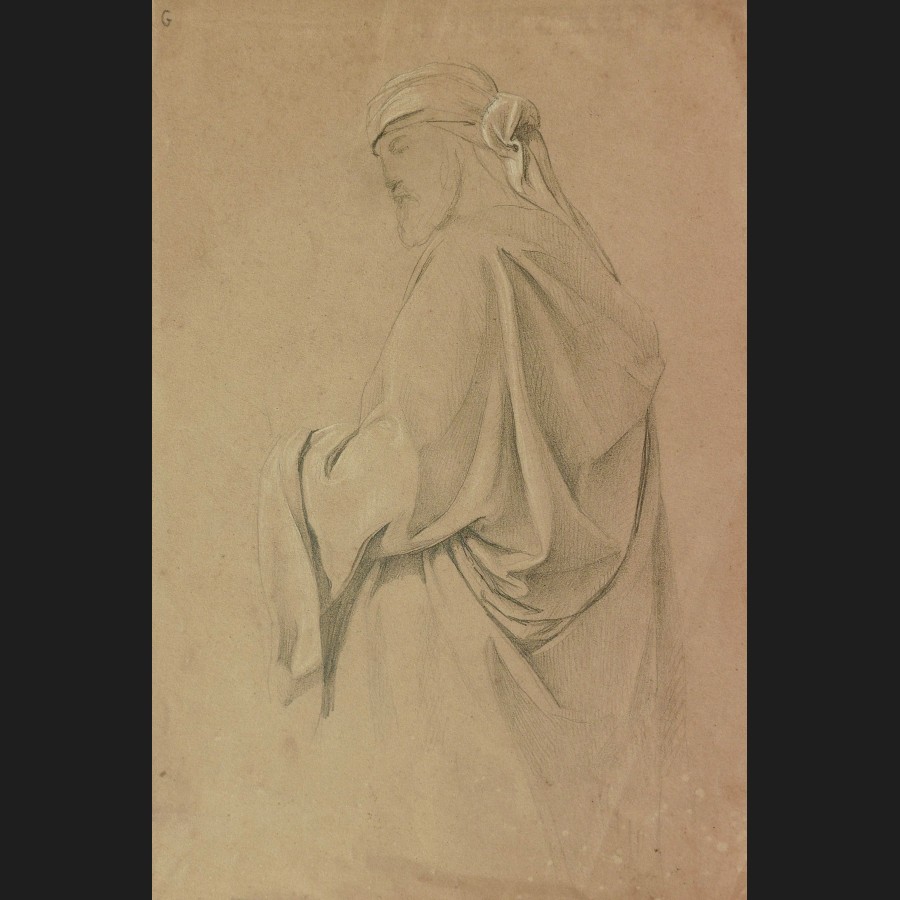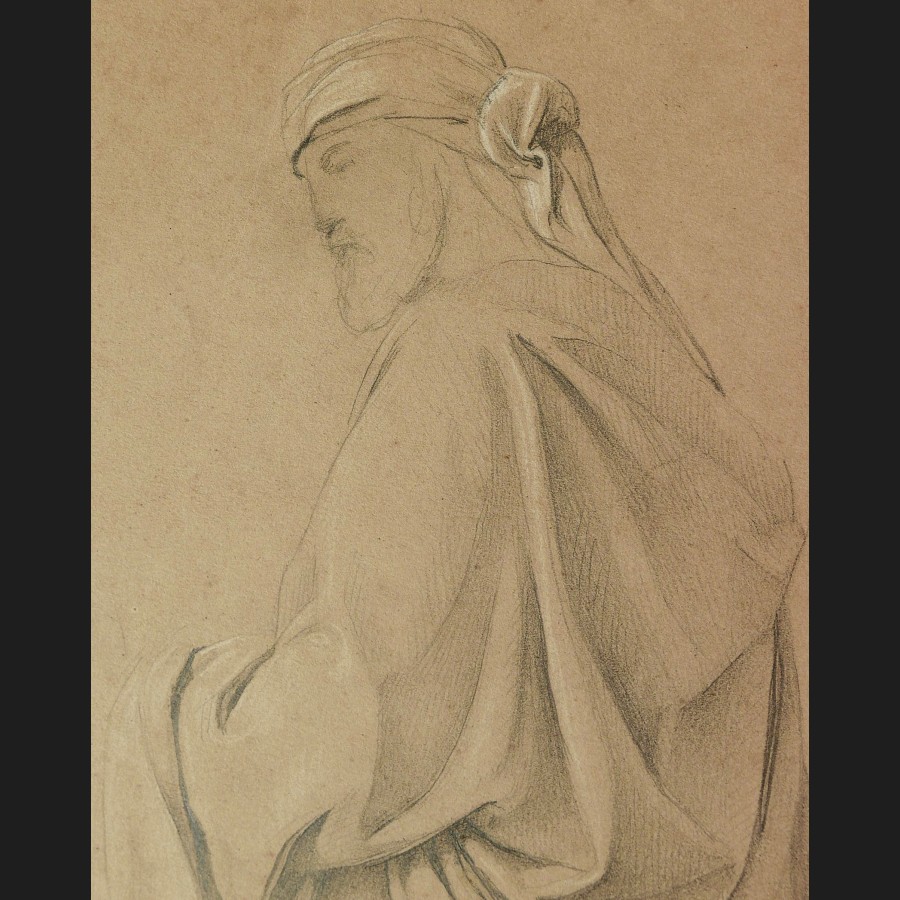 Attribué à Jean-Léon GÉRÔME, Étude d'homme en drapé et turban, dessin