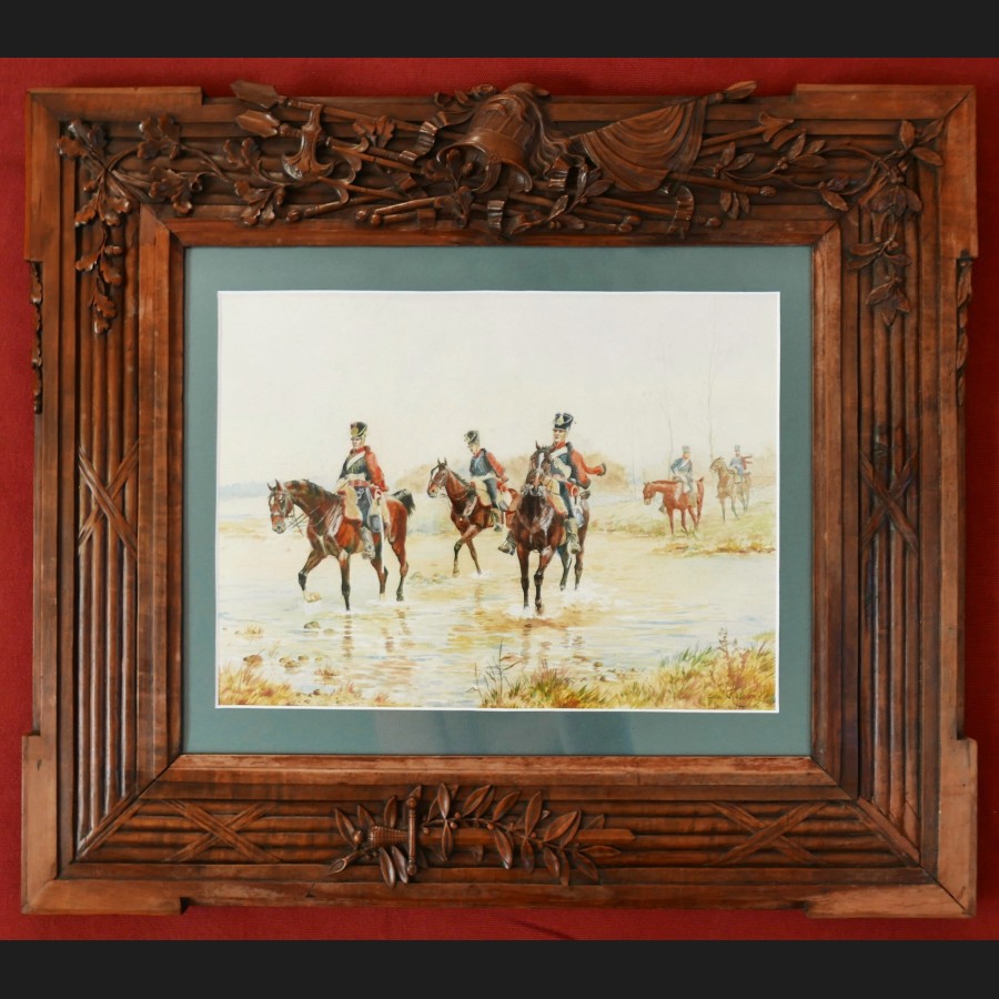 Eva RESSAN, Hussards à cheval, aquarelle