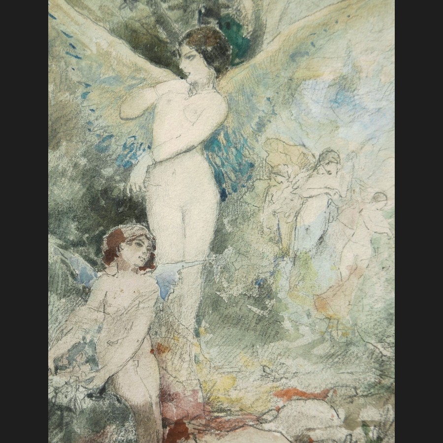 École FRANÇAISE circa 1890-1900Scène symbolisteFusain et aquarelle sur papierSigné en bas à droite ...20,5 x 15,5 cm