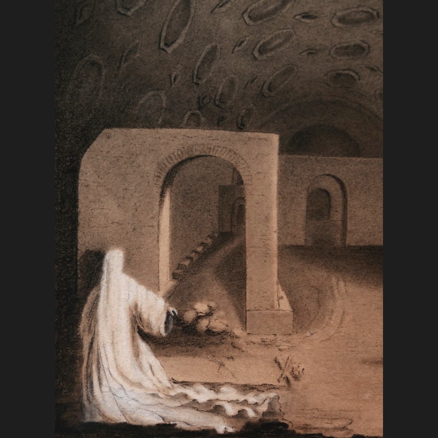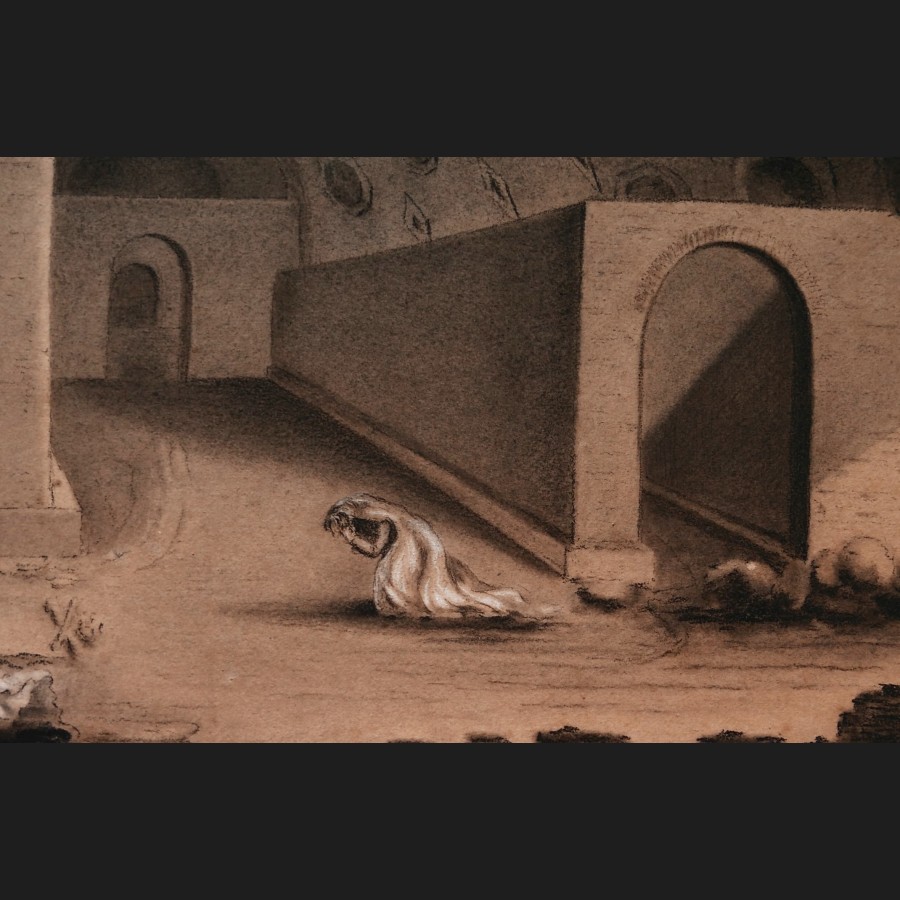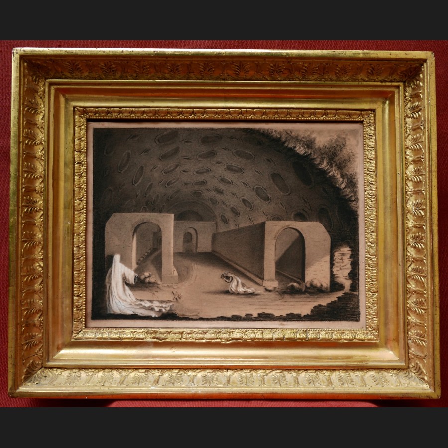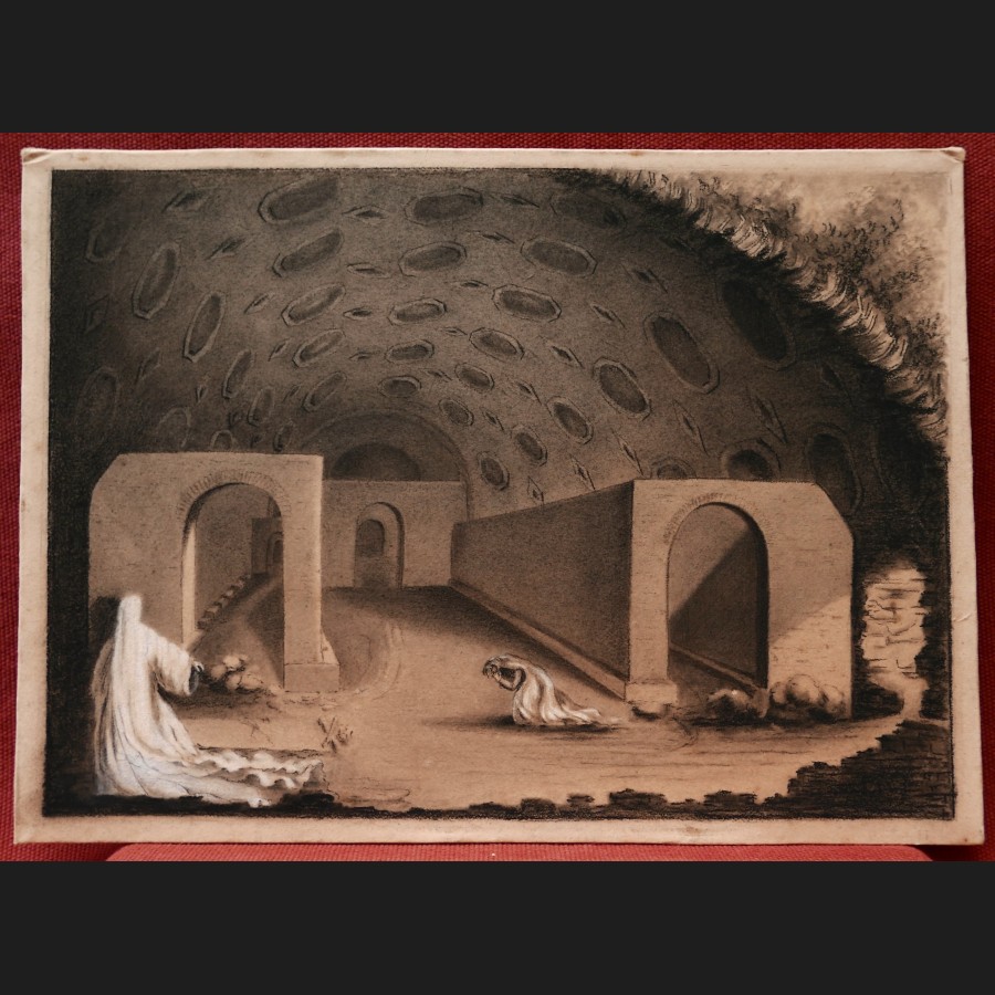 École FRANÇAISE du début du XIXème siècle, Scène mystérieuse sous une voûte antique, dessin
