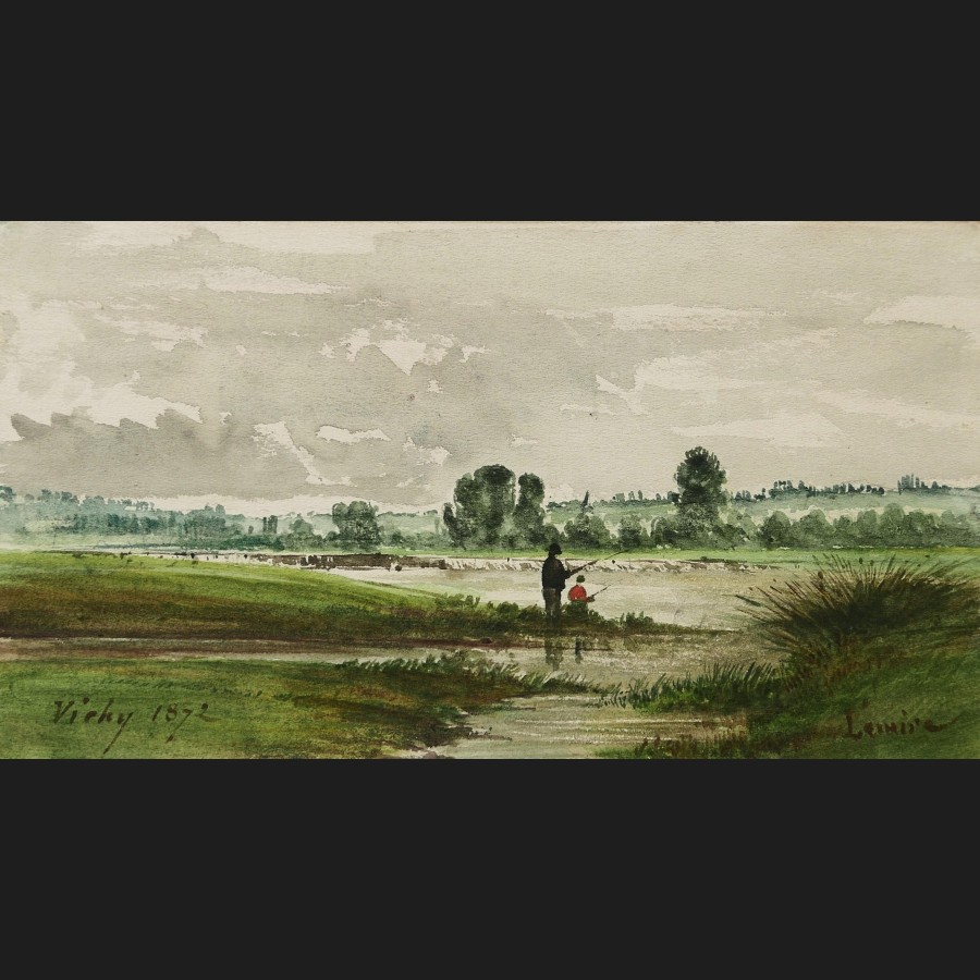 Achille Romain LEMIRE, Pêcheurs près de Vichy, aquarelle