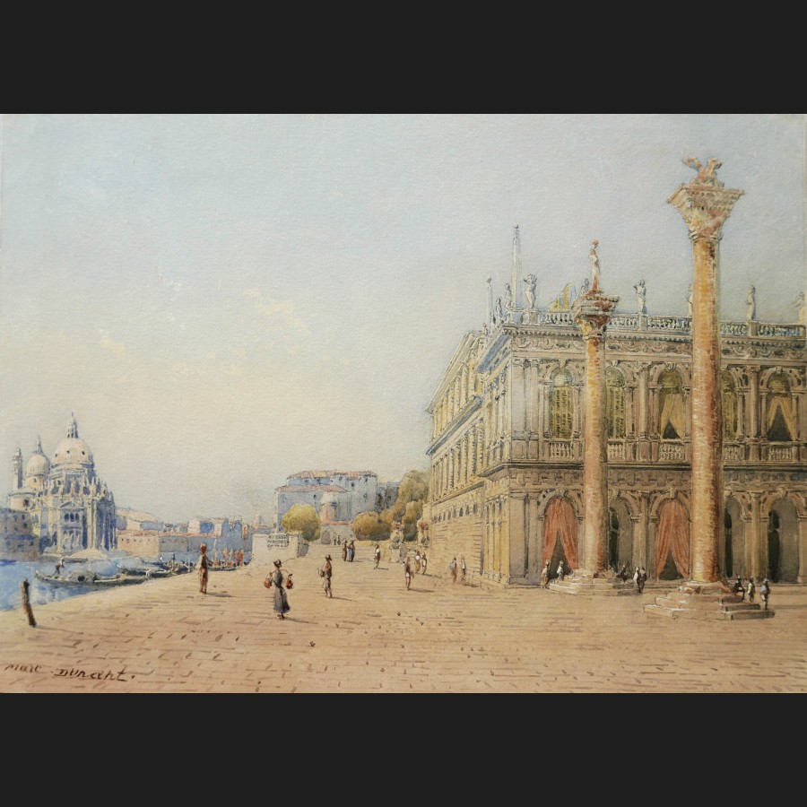 Jean-Marc DUNANT-VALLIER, dit Marc DUNANT, La Piazzetta animée à Venise, aquarelle