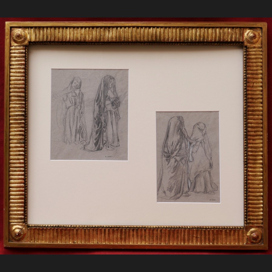 Deux dessins au crayon avec des rehauts de gouache sur papier vergé gris