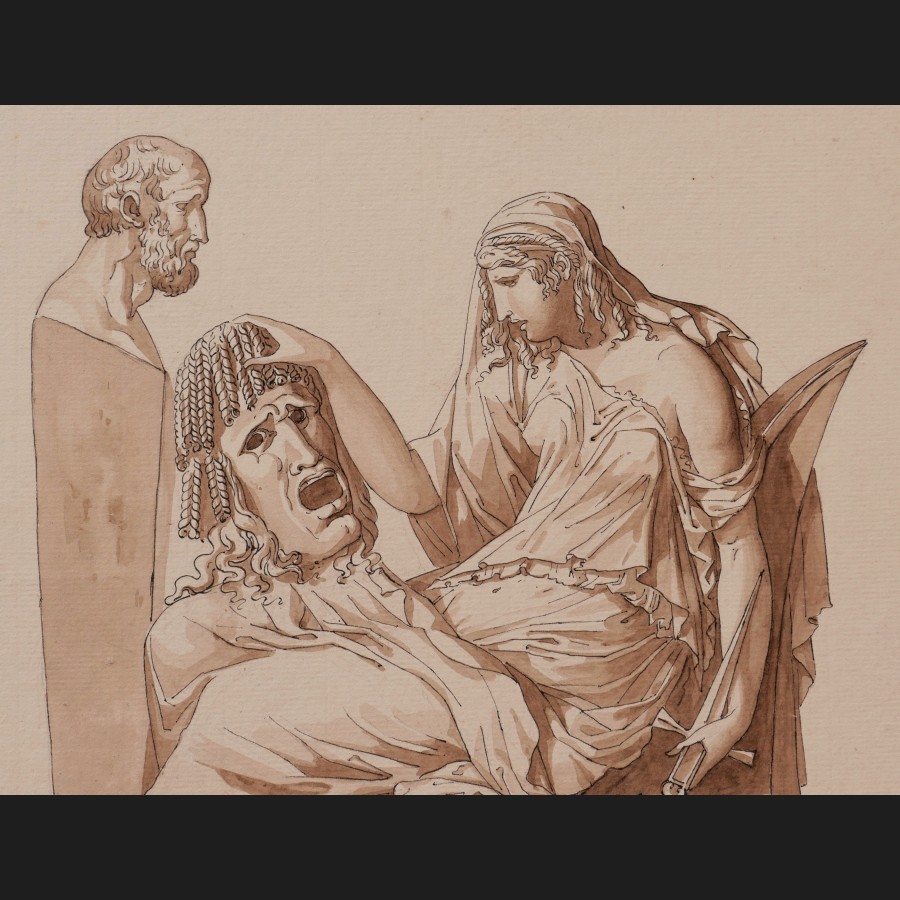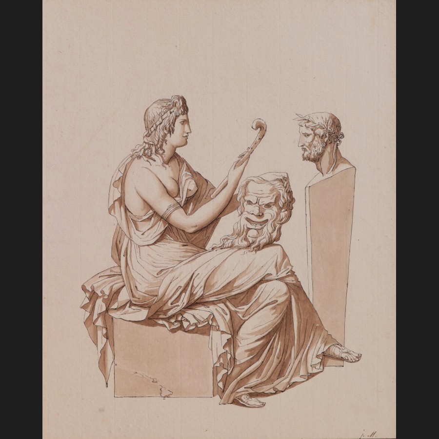 Louis Jules MALLET, La Tragédie et la Comédie, paire de dessins