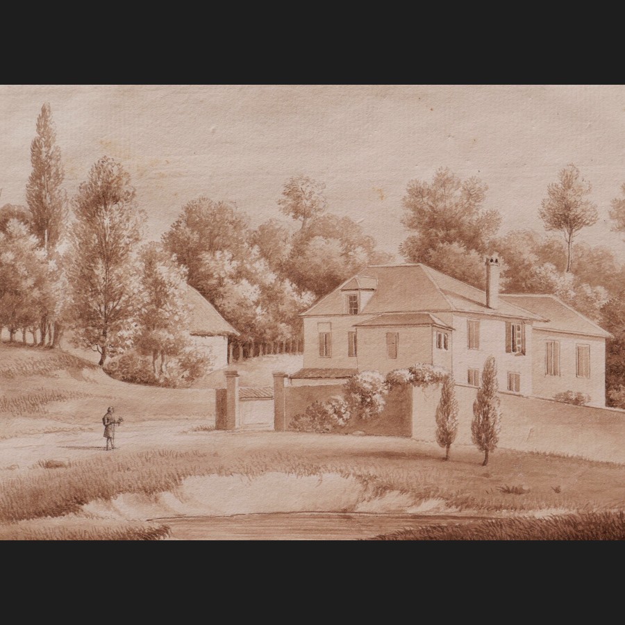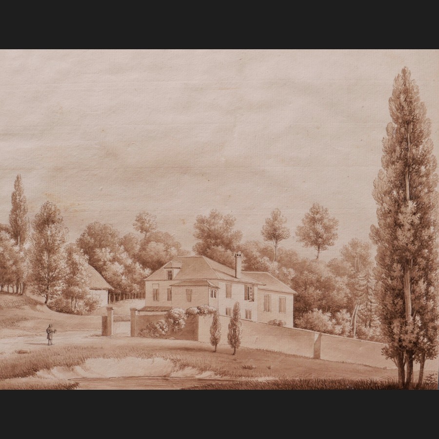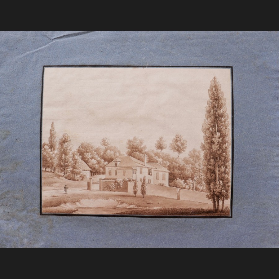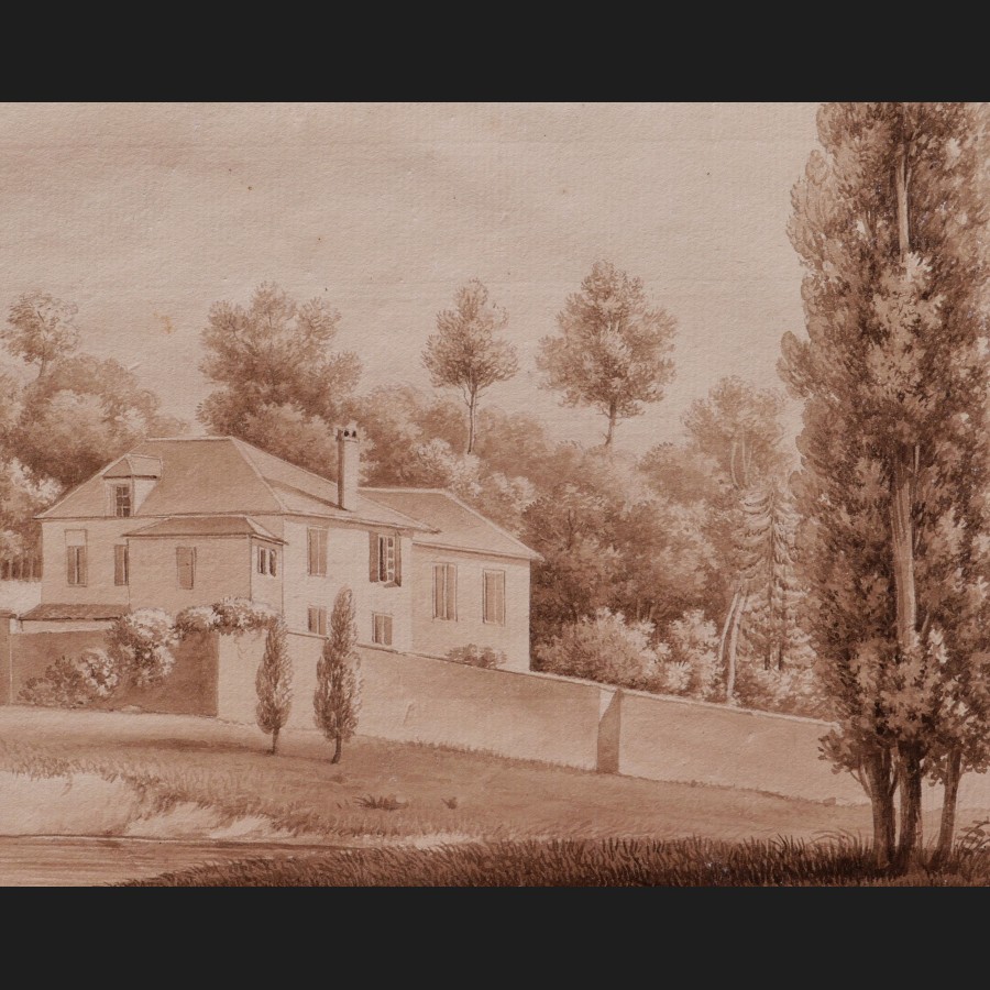 Titré à l'encre au dos Maison habitée par J.J. Rousseau à Montmorency Près de Paris, puis annoté au crayon Emilie Oberkampf 1808