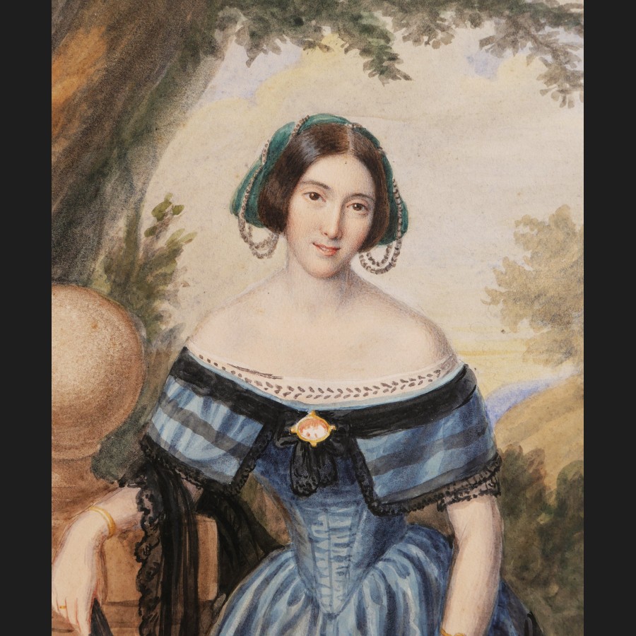 Alexandre CARLONI, Portrait de la Comtesse Clémentine Garin de Cocconato, aquarelle