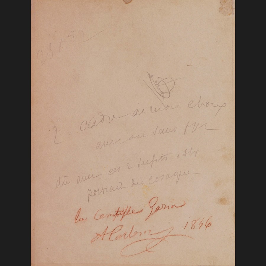 Titré, signé et daté au dos la Comtesse Garin / A Carloni / 1846