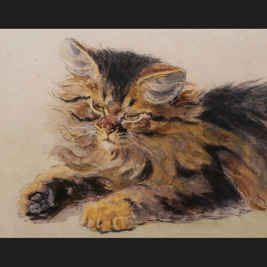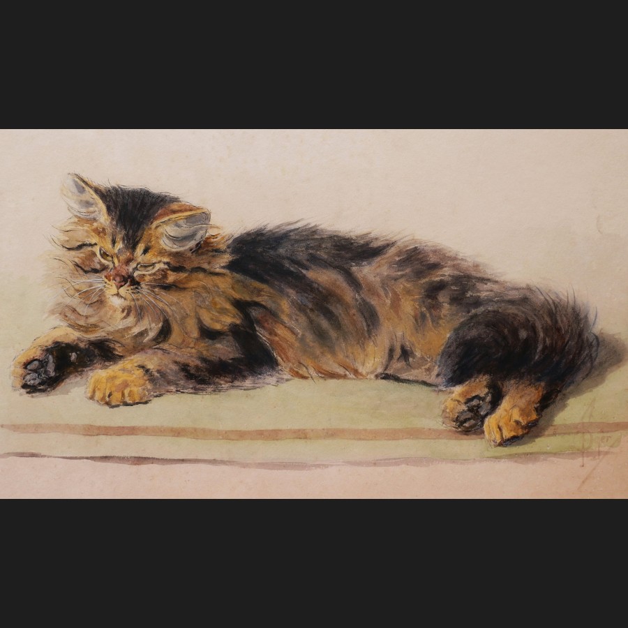 Ferdinand OGER (Paris, 1872 – Paris, 1929)Chat persan couchéAquarelleSigné en bas à droite F Oger31 x 47,5 cmCadre en bois doré