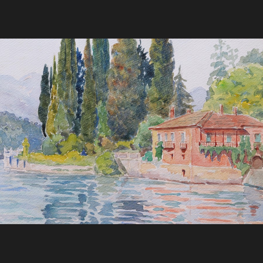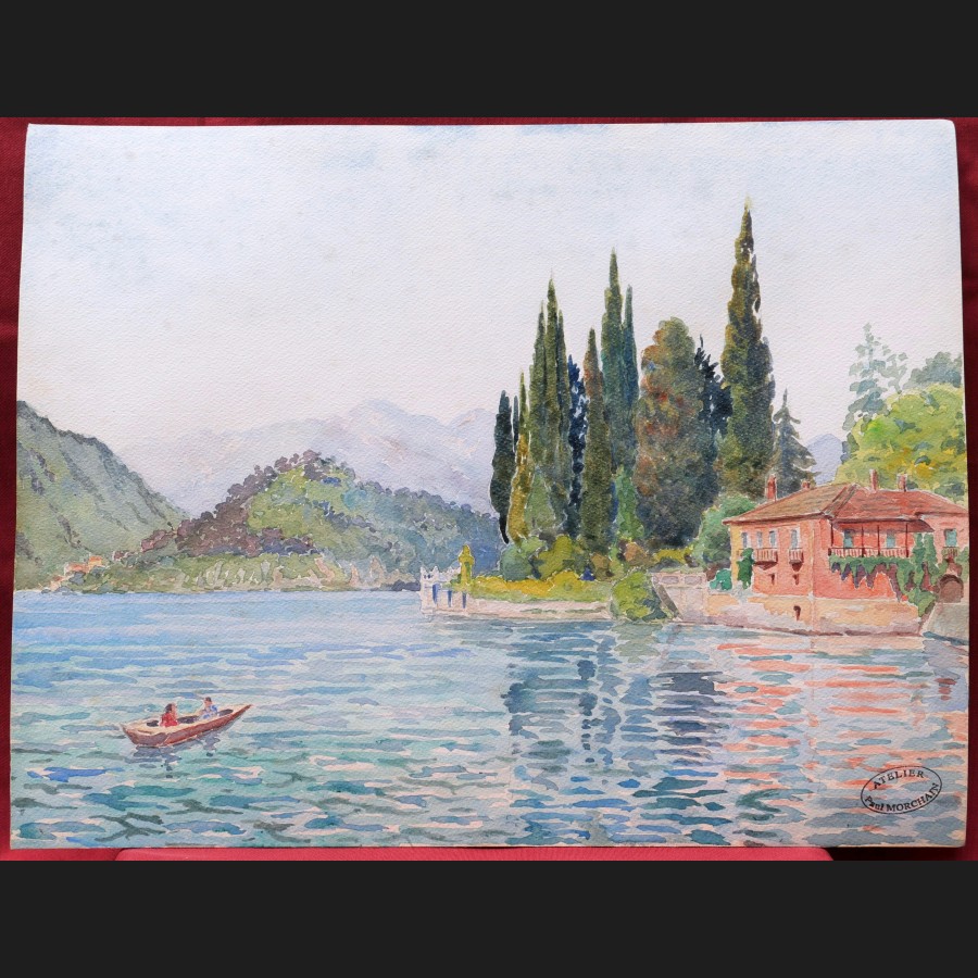 Paul MORCHAIN (1876-1939)Lac en ItalieAquarelle sur papierCachet en bas à droite ATELIER PAUL MORCHAIN26 x 34 cm