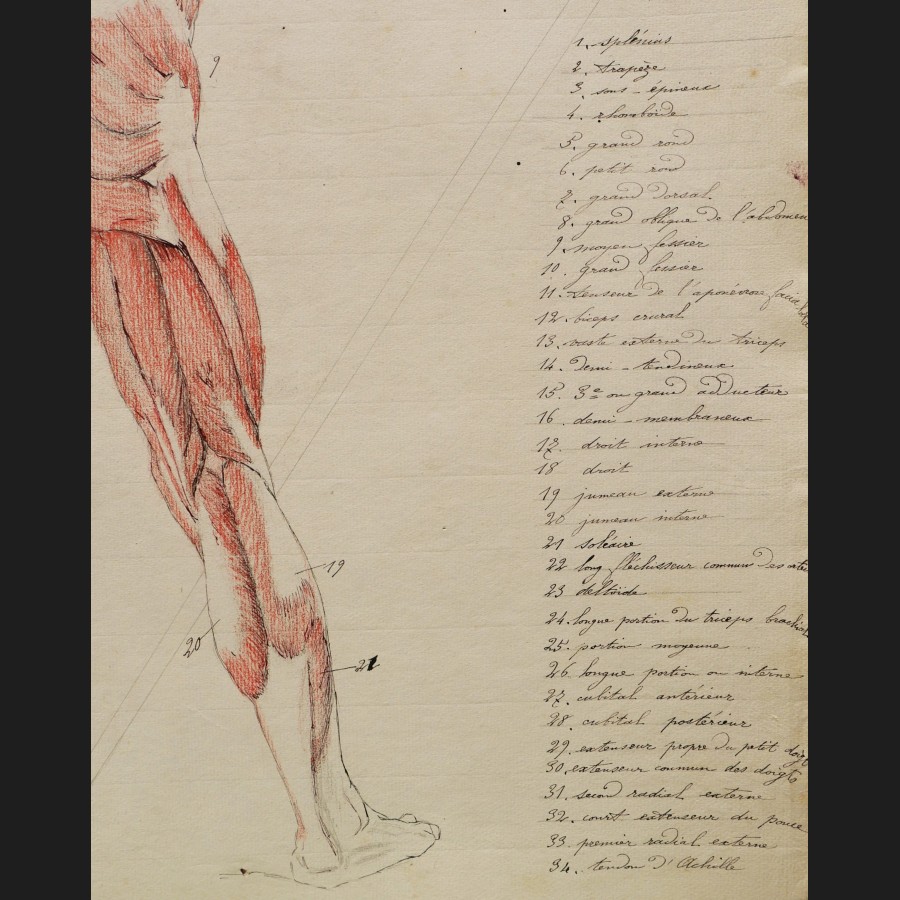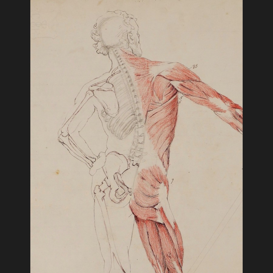 Laetitia DOUMICHAUD de la CHASSAGNE-GROSSE, Écorché de dos, dessin