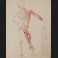 Fusain, plume, encre noire, encre violette et crayon rouge sur papier vergé