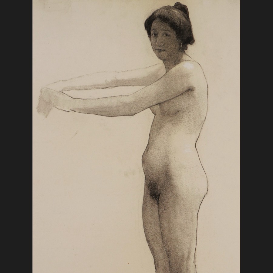 Académie de femme nue debout, les bras en avant