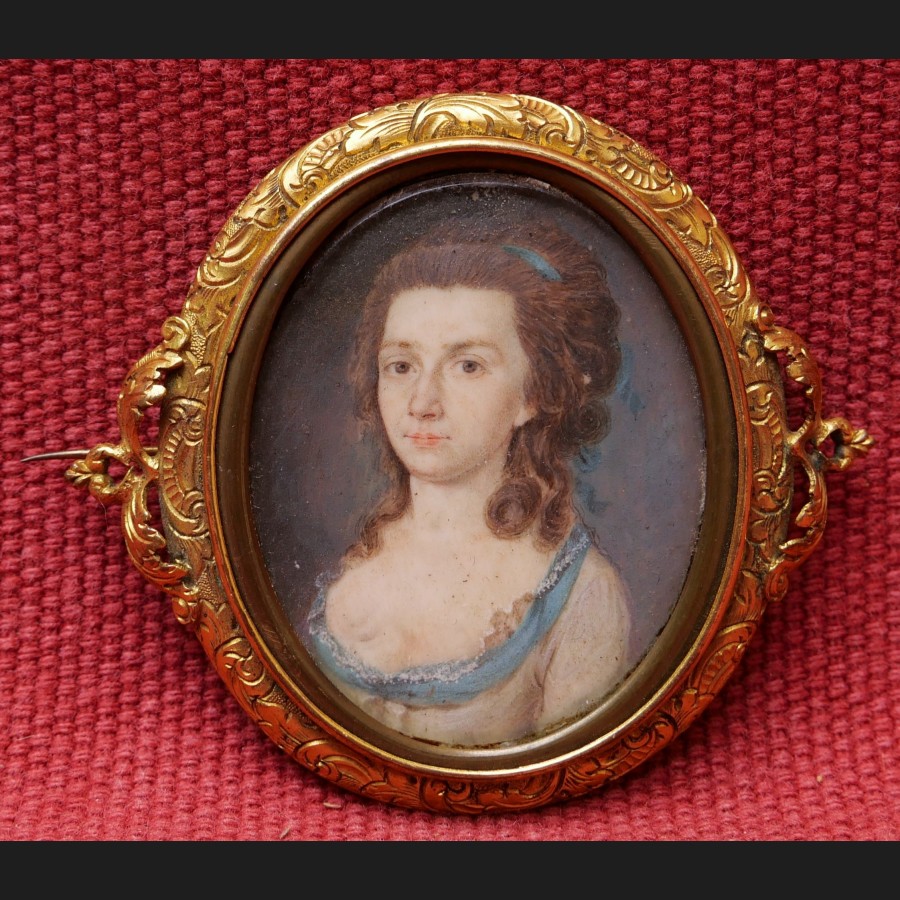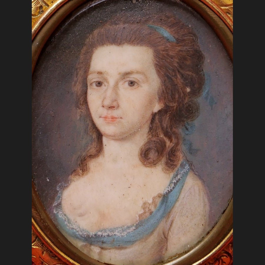 École FRANÇAISE du XVIIIème siècle, Portrait de femme en robe bleue, miniature