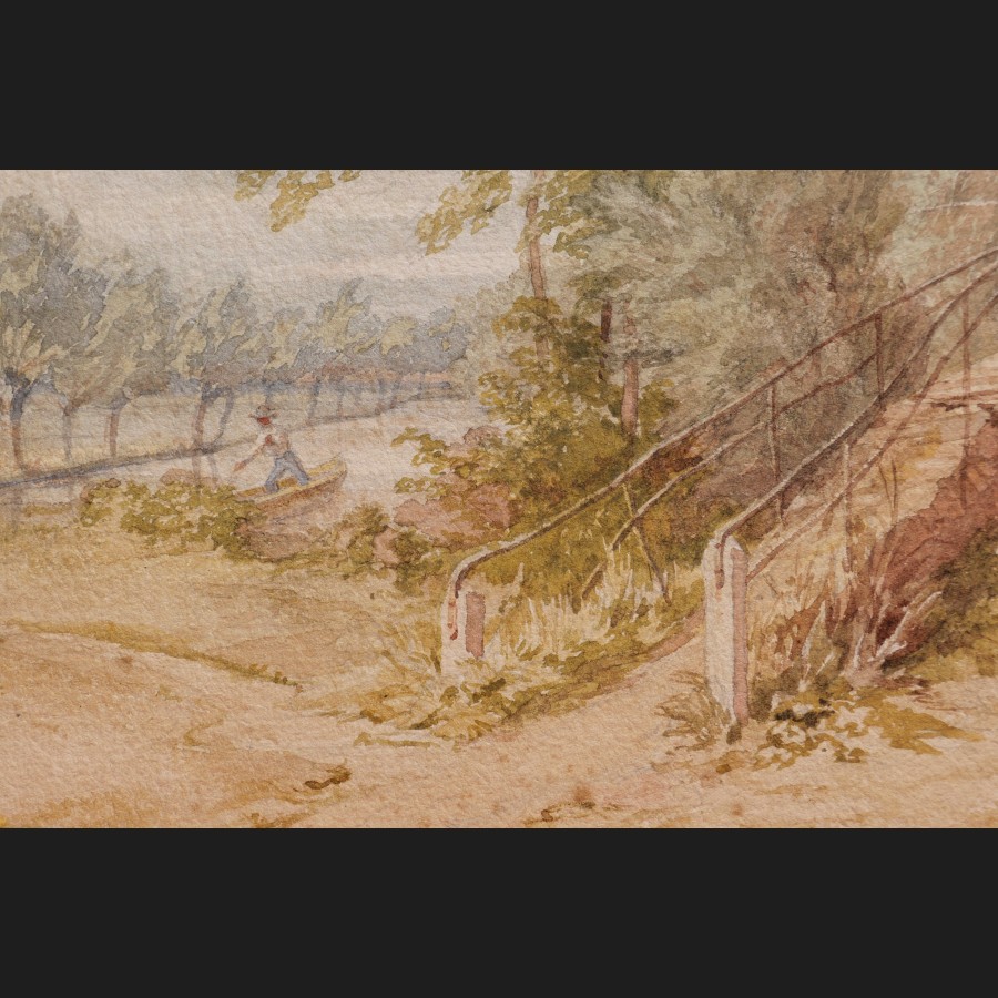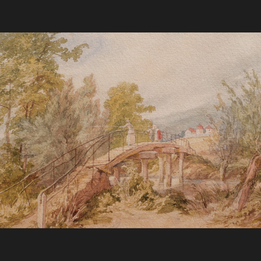 Louis Marie Baptiste, Baron ATTHALIN, Femmes et enfant pêchant sur un pont, aquarelle