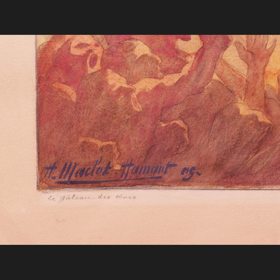 Signé, daté et titré en bas à gauche H. Maclot-Hamant 09 / Le gâteau des Rois, inscrit en bas à droite aquarelle originale (1909)