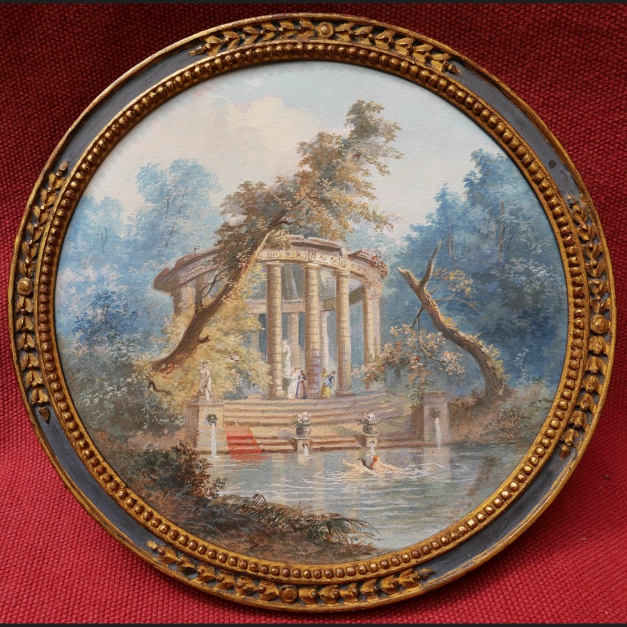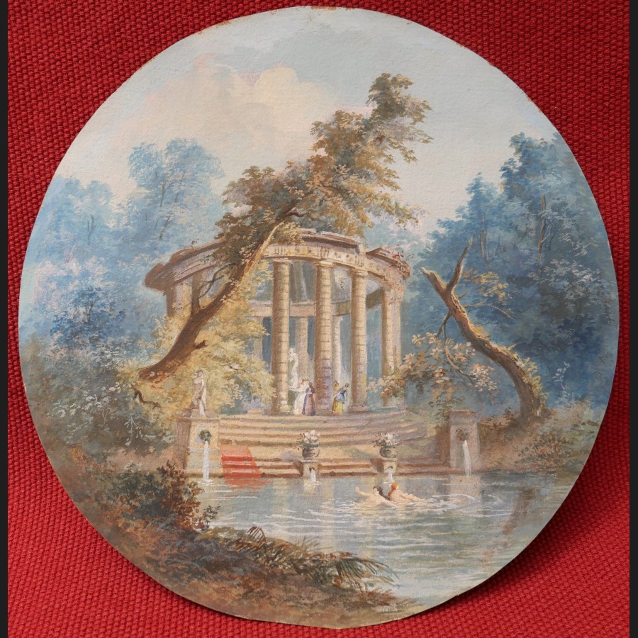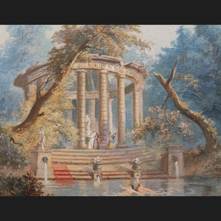 Attribué à Pierre-Antoine MONGIN (Paris, 1761 – Versailles, 1827), Baignade devant une rotonde antique, gouache