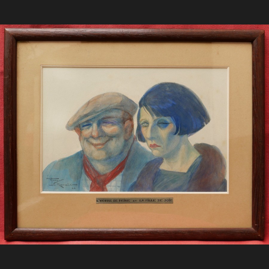 Signé et daté en bas à gauche Henry Le Monnier 23 et titré sur le montage L'HOMME DE PEINE ET LA FILLE DE JOIE