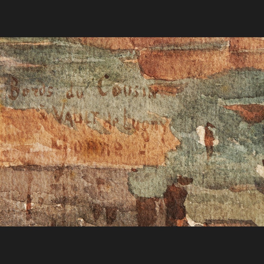 Situé en bas à gauche Bords du COUSIN / à VAULT de Lugny / Yonne, signé et daté en bas à droite Félix Brard / Juin 1907