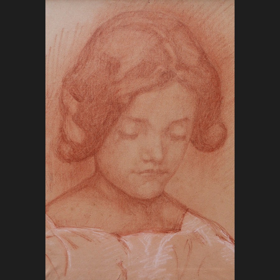 École FRANÇAISE du XIXème siècle, attribué à Léon DETROY, Portrait de jeune femme les yeux baissés, dessin