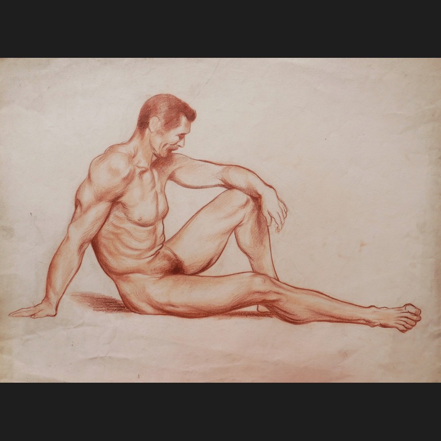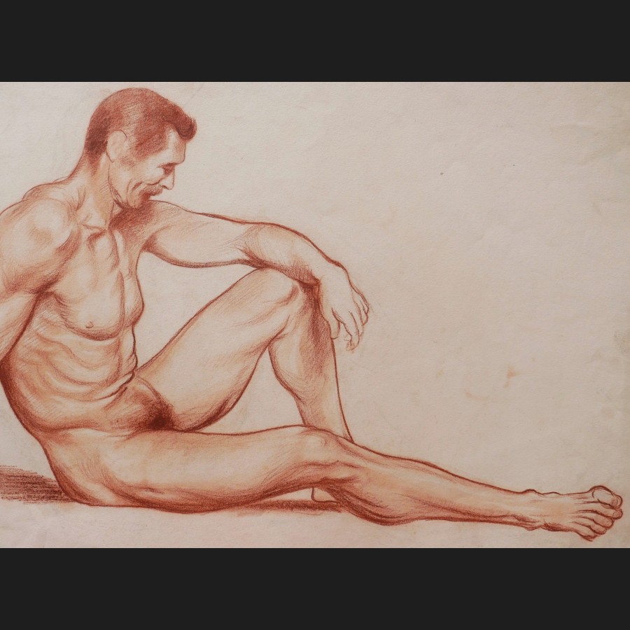 École FRANÇAISE, début XXème siècleAcadémie d'homme nu assisSanguine sur papier44,5 x 59 cm