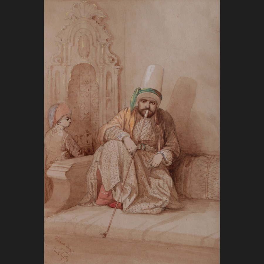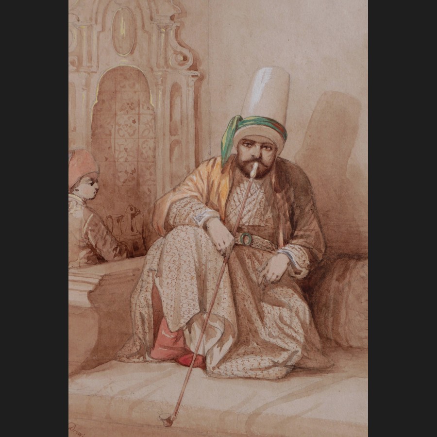 Camille Adolphe ROGIER, Derviche ottoman fumant le chibouk à Scutari, dessin