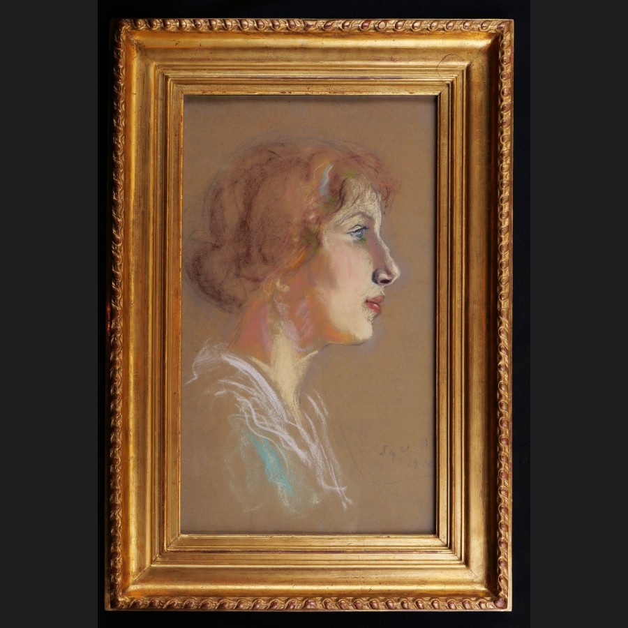 Attribué à Albert BESNARD, Portrait de femme de profil, pastel