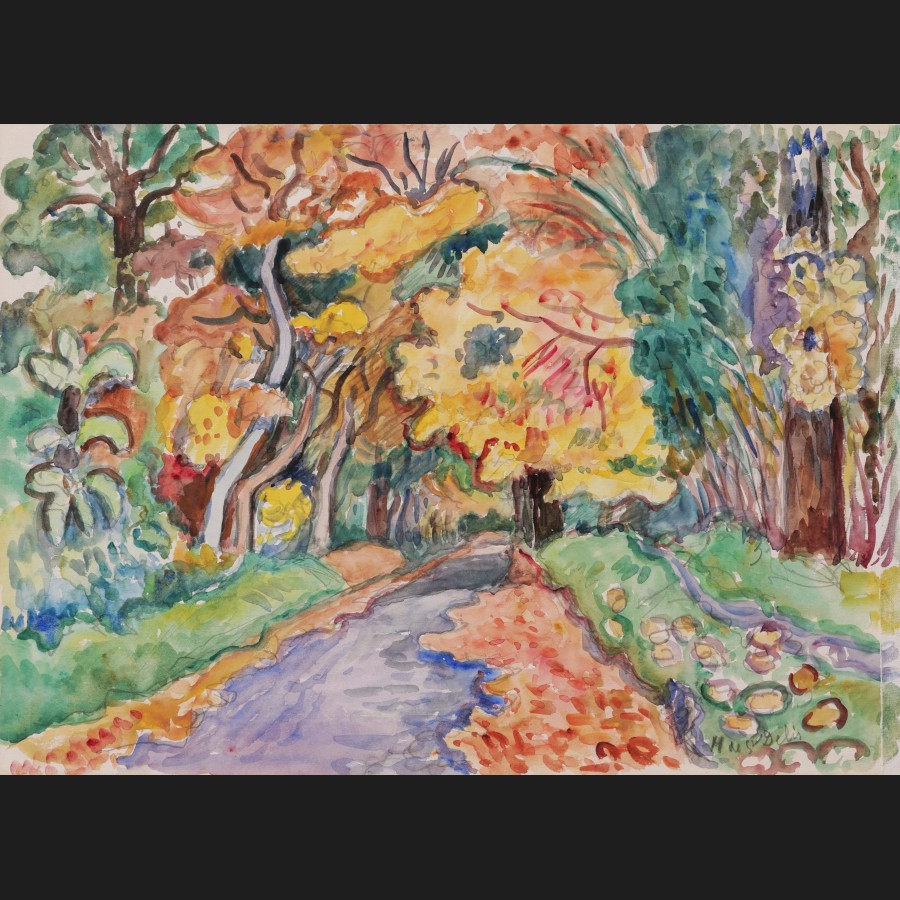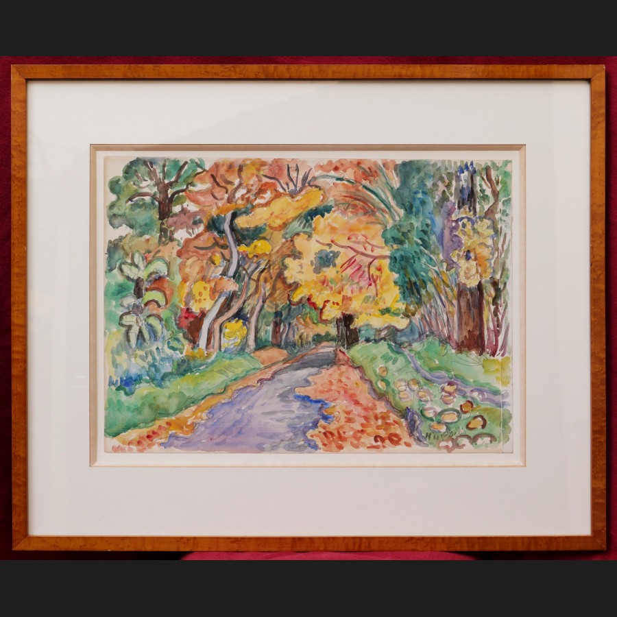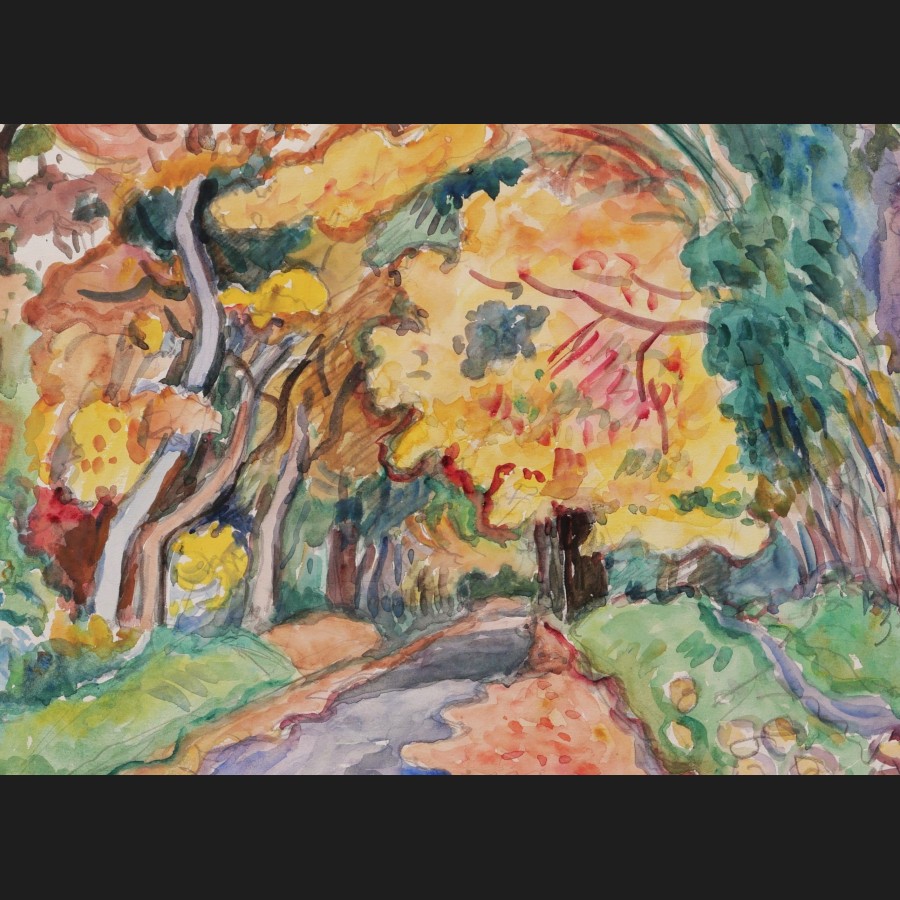 Henri LIÉNARD, dit Henri de SAINT-DELIS, Chemin en sous-bois, aquarelle
