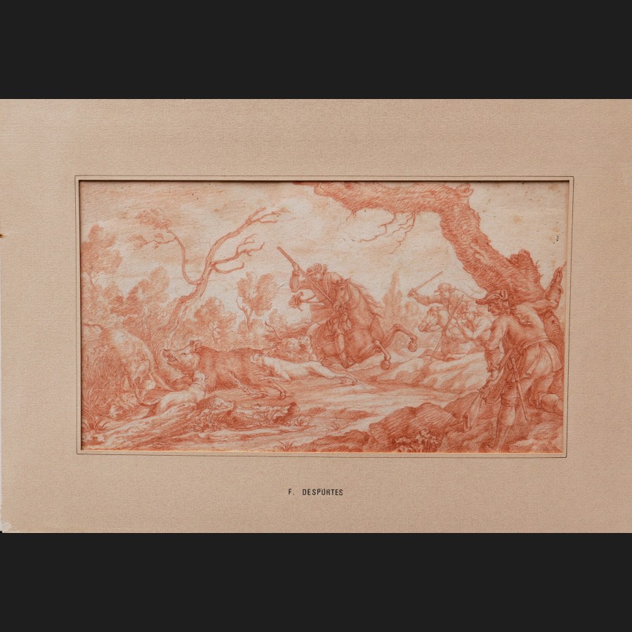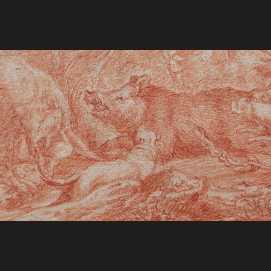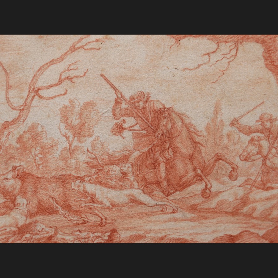 Attribué à Johann Elias RIDINGER, Scène de chasse à courre au sanglier, dessin