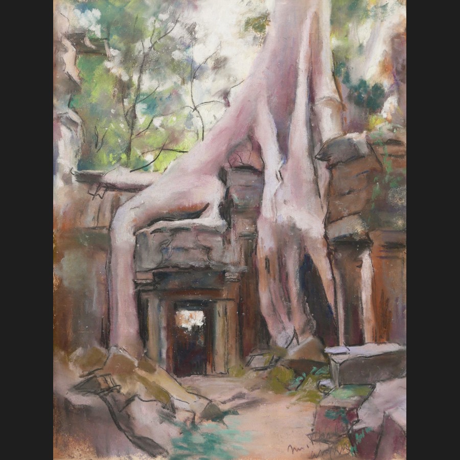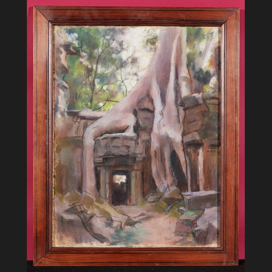 Marthe PASTEUR, Fromager au temple de Ta Prohm à Angkor au Cambodge, pastel